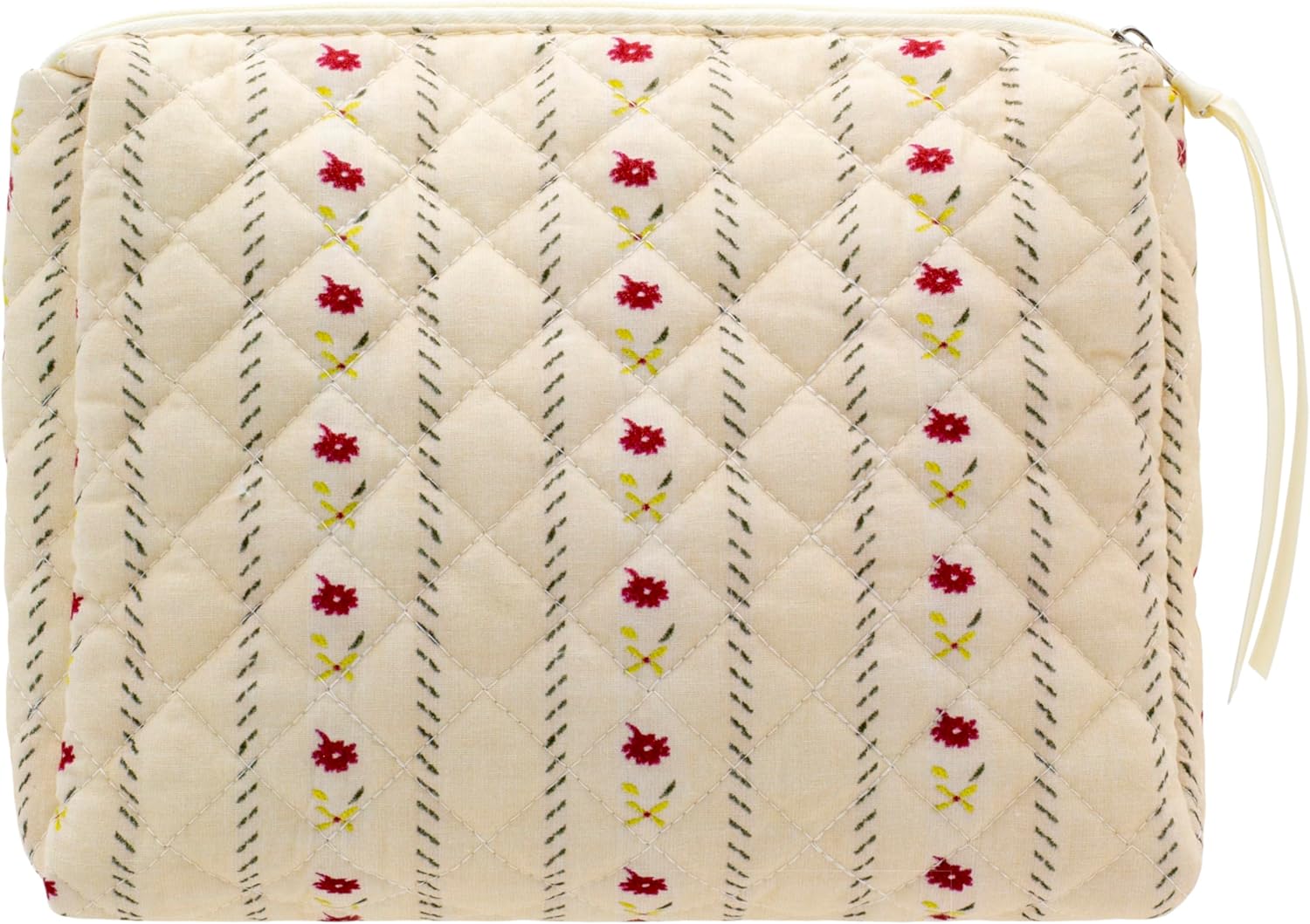 PAZIMIIK Quilted Makeup Bag Large Travel Zipper Soft Cosmetic Pouch for Women Girls Make Up,Little Flower Beige