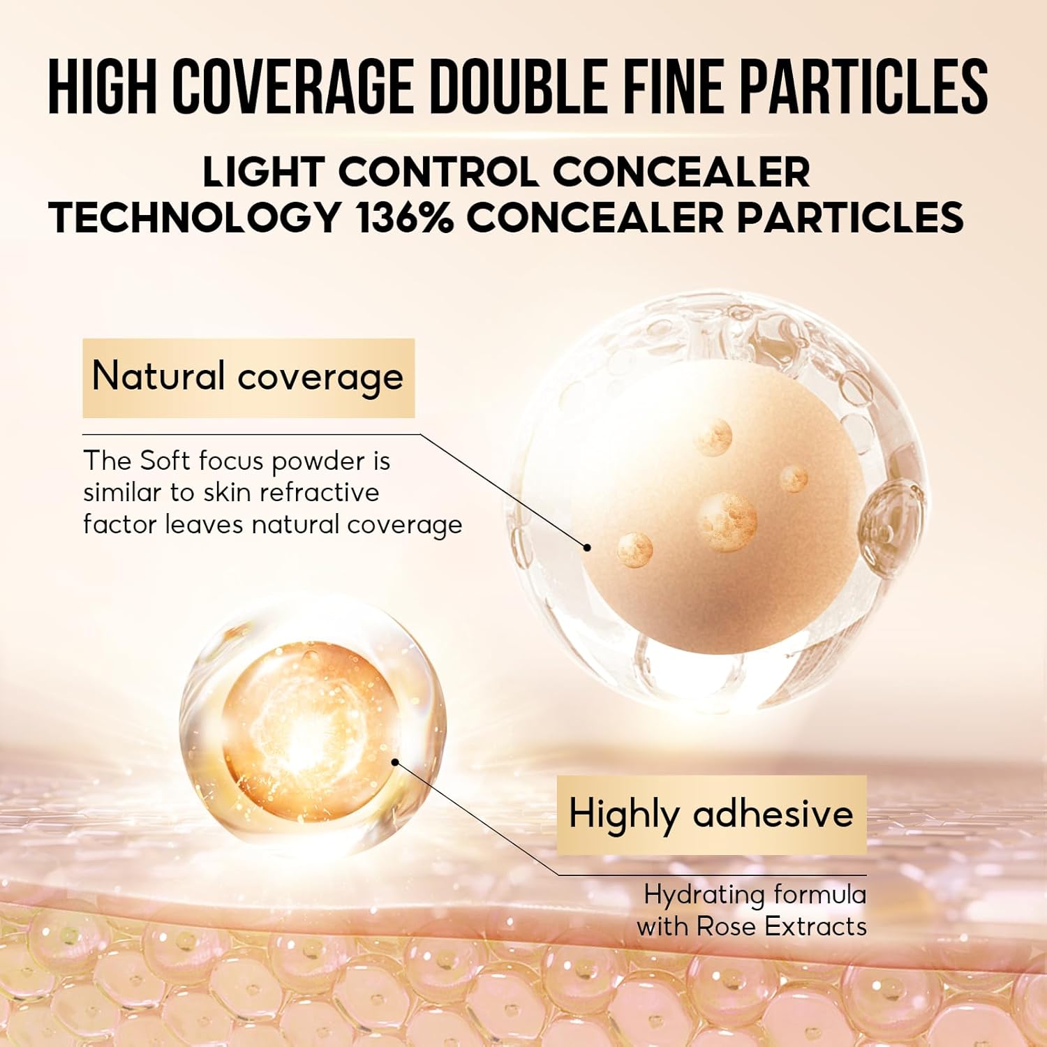 - LIGHT CONTROL HIGH CONCEALER: Giving you a flawless complexion, double concealer particles, large particles conceal blemishes, small particles are fine and docile, 1.81 times concealer particles, soft focus concealer.