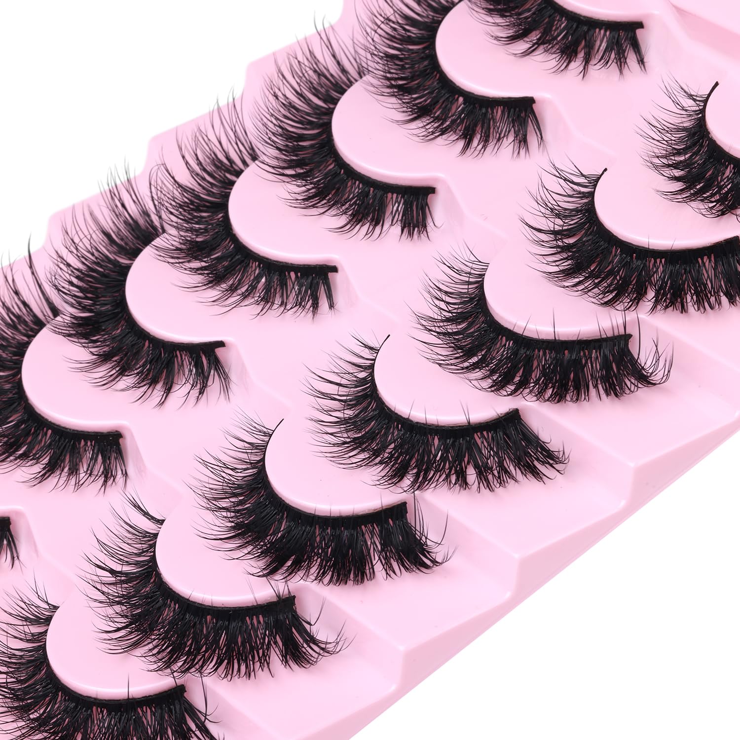 - Super Soft Lash Band: False eyelashes with 100% pure cotton band, soft to wear all the day. Wispy eyelashes band can be trimed to suit different eyes size. Strip lashes that look like extensions are easy to adjust and apply. No harm to your skin.