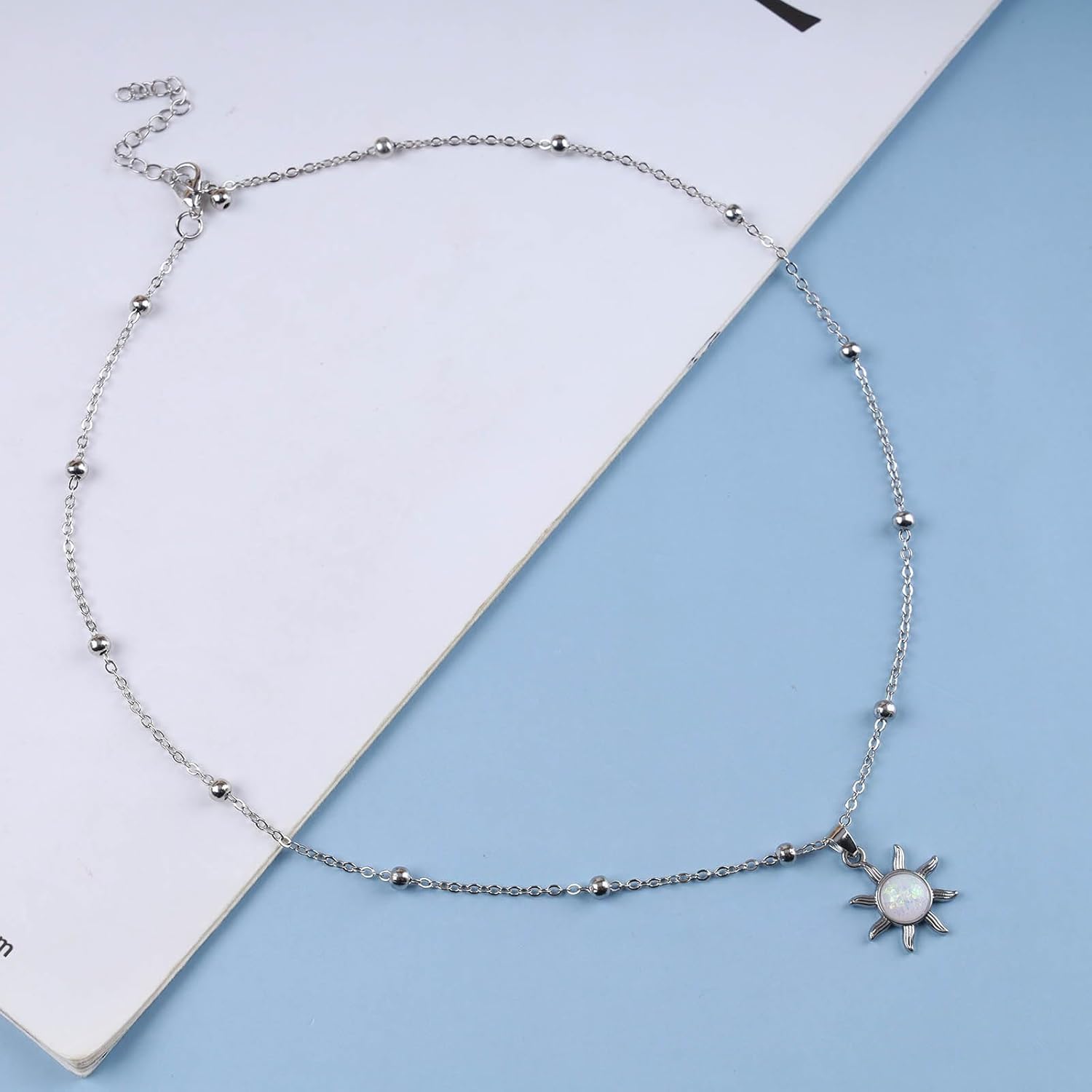 Vintage Opal Crystal Sun Pendent Necklace Opal Sunburst Necklace Moonstone Sun Choker Necklace Gold Ball Chain Necklace Jewelry for Women (Gold)