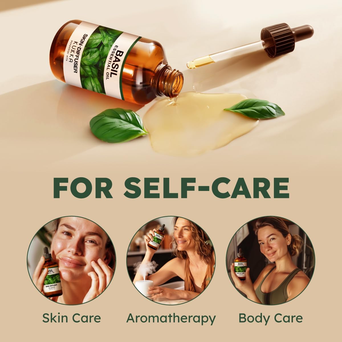 Kukka Basil Essential Oil for Diffusers - 4 Fl Oz - Basil Oil for Skin & Aromatherapy Scent Massage Candles, DIY Soap Making Scents