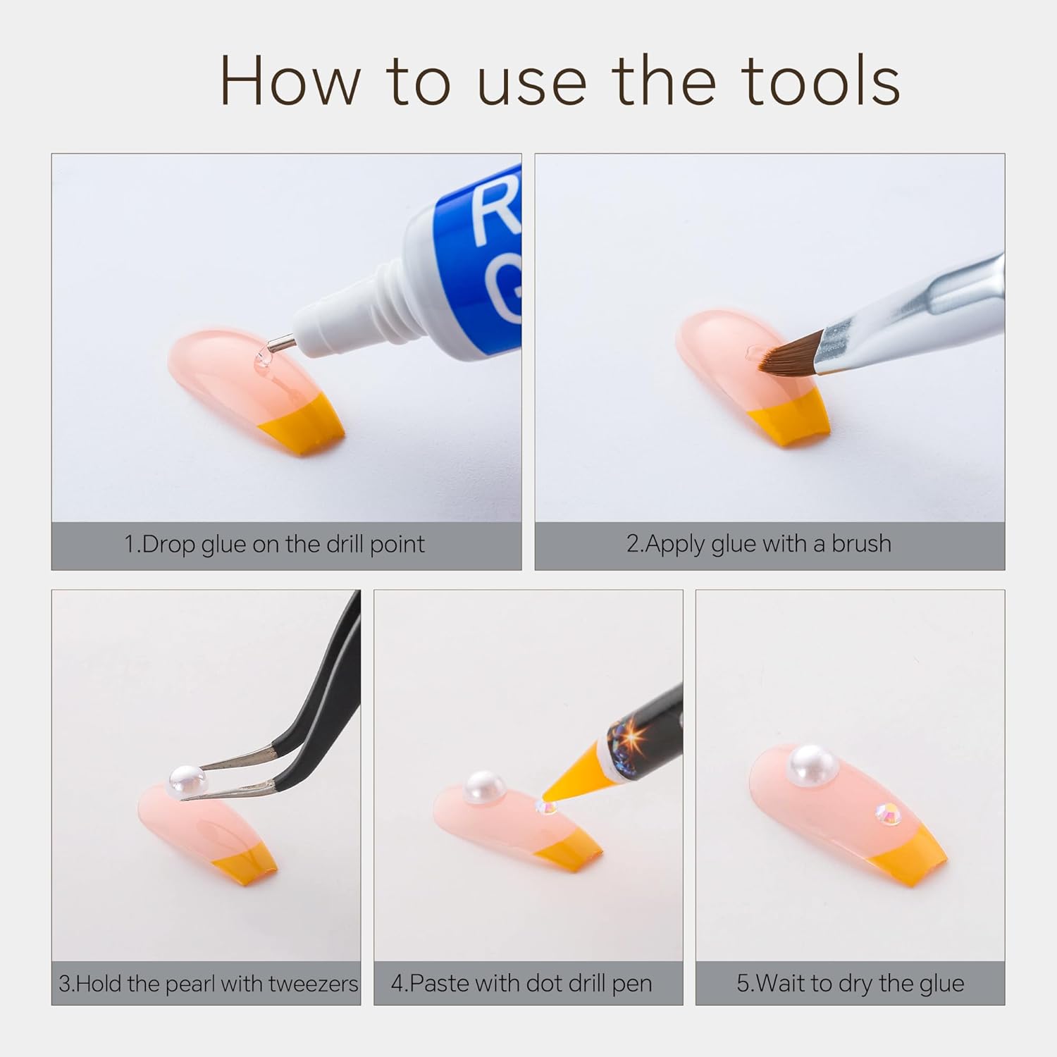 - Useful tools - These pearls and rhinestones have a flat back, which is excellent for easy placement.and you can pick up any large or small pearls and rhinestones with the crayons we bring along. And use the brush to smooth out the Gel, these tools will work very well