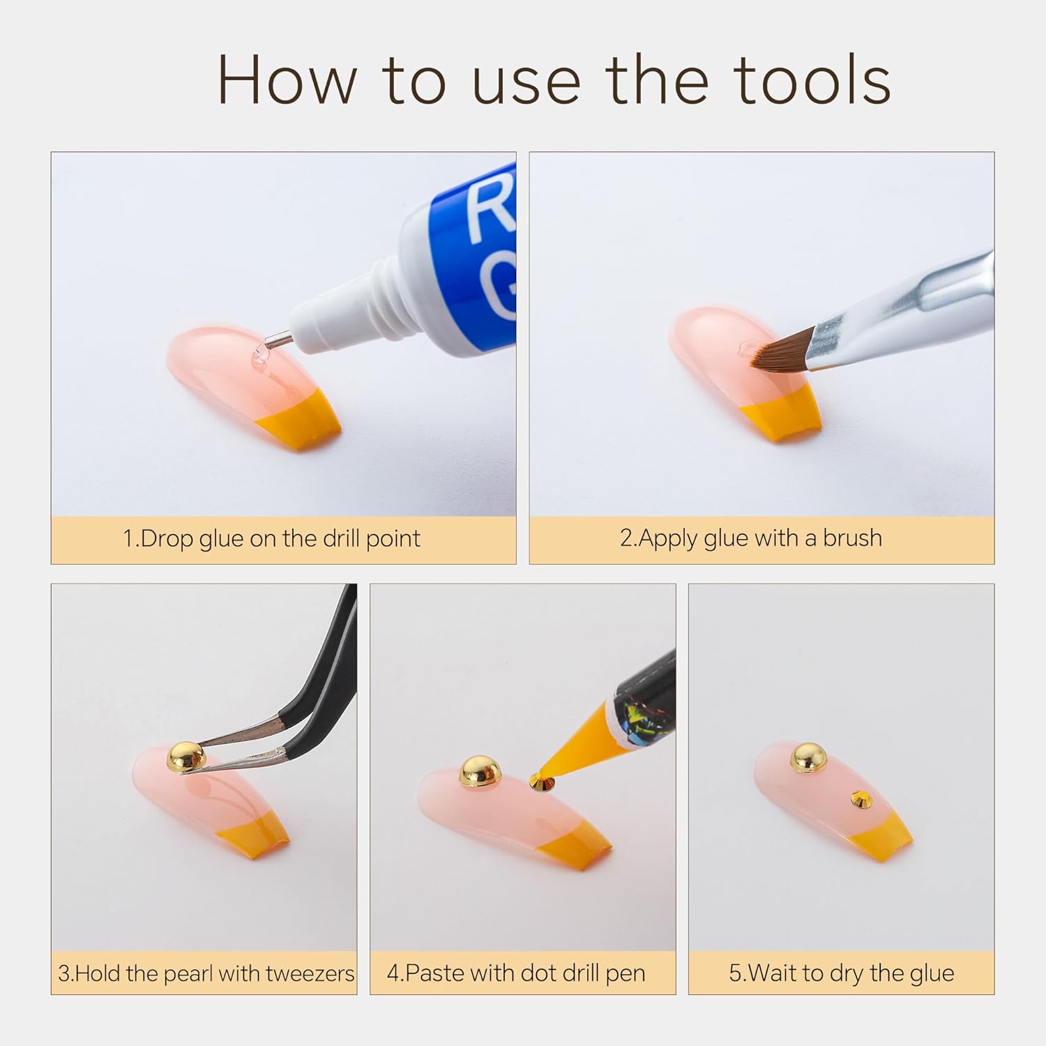- Useful tools - These pearls and rhinestones have a flat back, which is excellent for easy placement.and you can pick up any large or small pearls and rhinestones with the crayons we bring along. And use the brush to smooth out the Gel, these tools will work very well