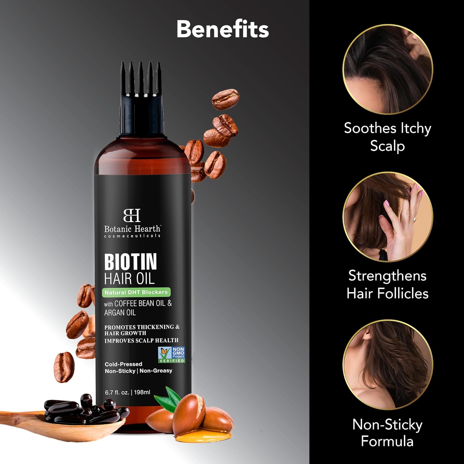 - Comb Applicator: The Biotin premium hair oil comes with a comb applicator that evenly distributes oil, smoothens knots & frizzes, making the application process effortless