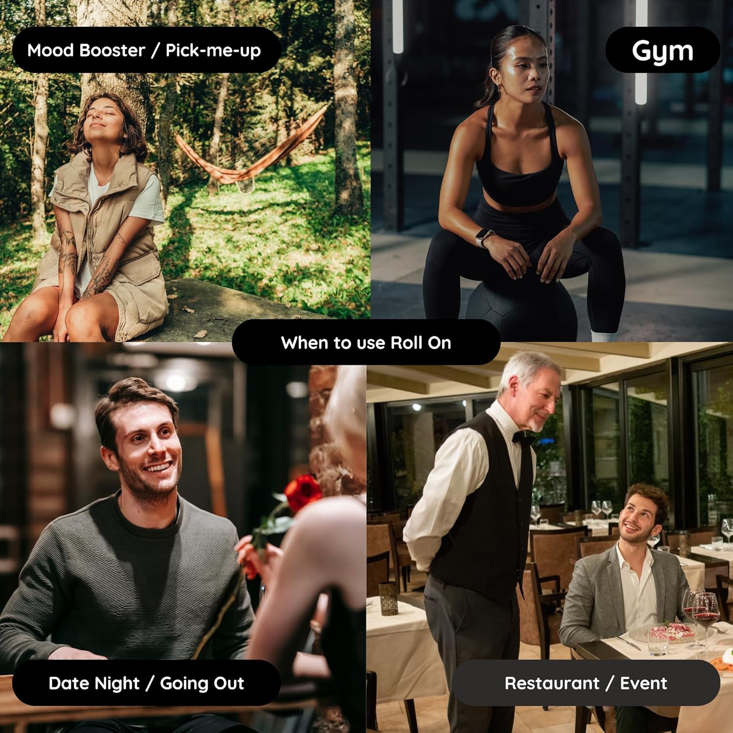 - ON-THE-GO CONVENIENCE - Our roll-ons are thoughtfully crafted with a travel-friendly size, making them perfect companions for your daily adventures. Slip one into your bag or pocket and effortlessly elevate your mood anytime, anywhere. The sleek and compact design ensures mess-free application, while the rollerball glides smoothly over your skin, delivering the perfect amount of scent with each stroke.