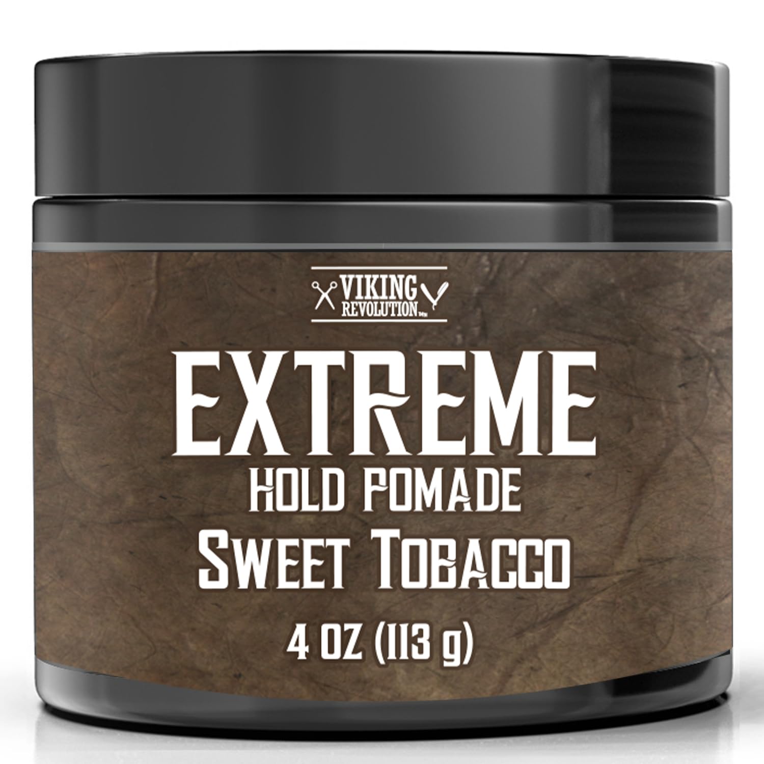 Viking Revolution Sweet Tobacco Hair Pomade for Men - Extreme Hold Water-Based Hair Gel - Extra Firm Strong Hold With High Shine - Men's Hair Cream (4oz)