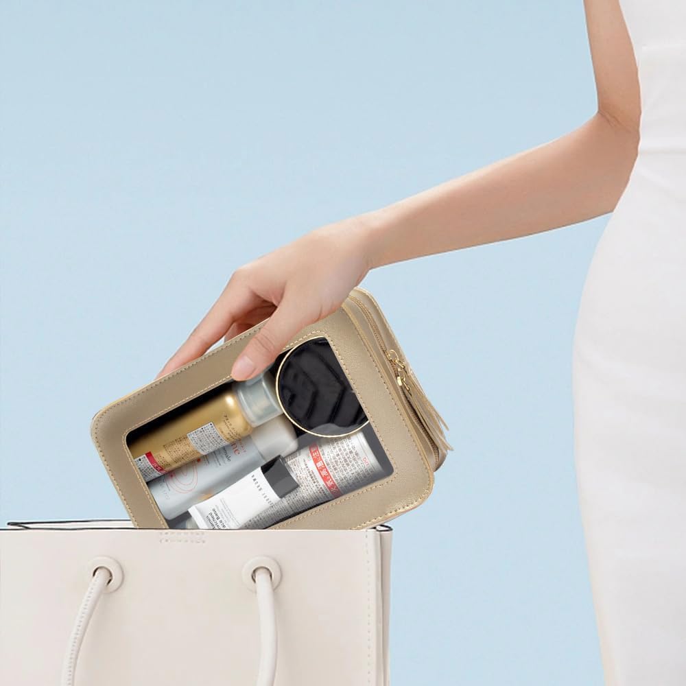 - Clear Design: Our clear toiletry bag is sleek and minimalistic look for your makeup accessories collection. And is designed with a clear PVC window,all items are clear at a glance, and you can quickly choose the cosmetics you need. Size:9.44“*6.1”*2.75“