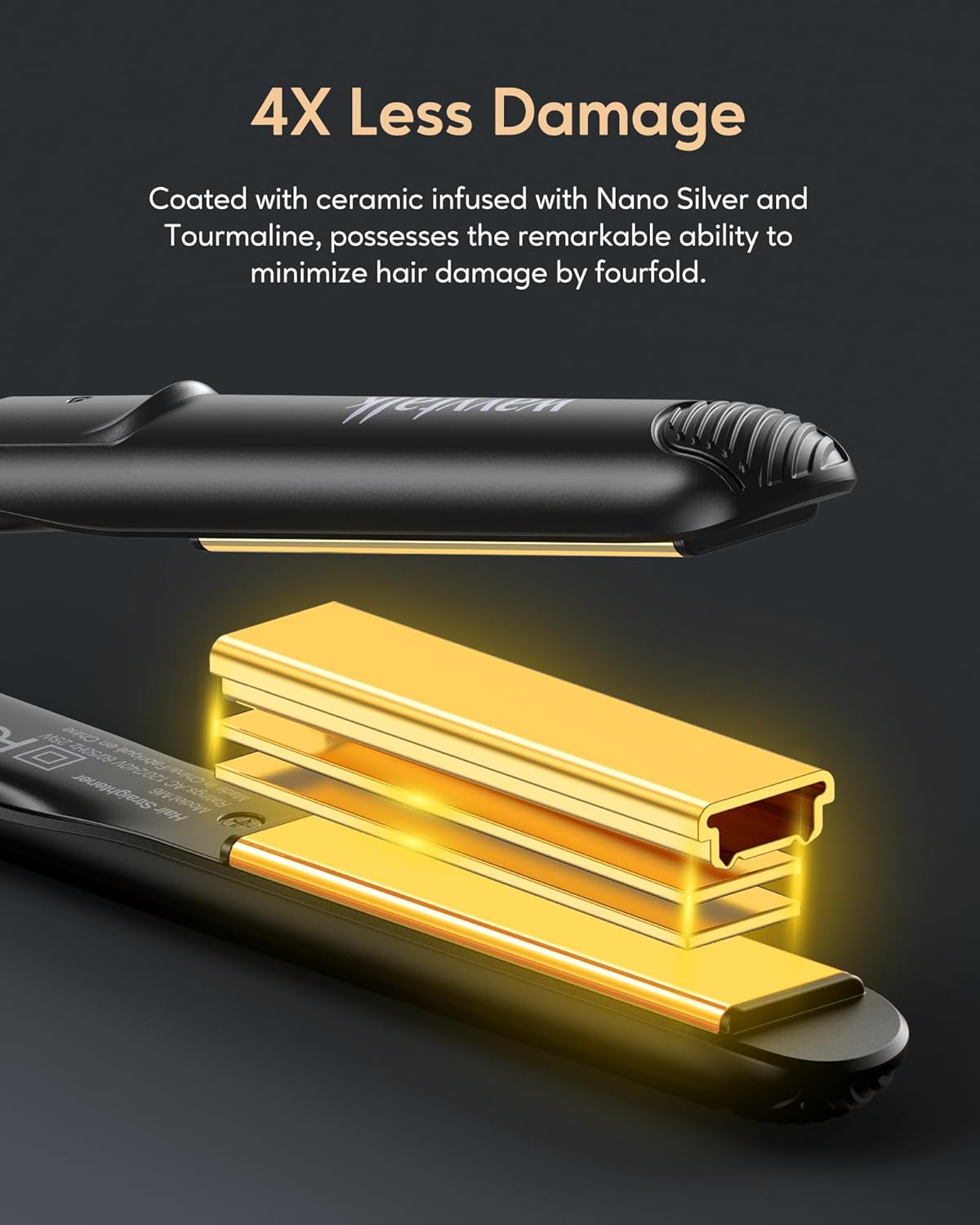 Wavytalk Pro Mini Temperature Adjustable Hair Straightener - 0.7 Inch Small Flat Iron for Short Hair, Curls, Bangs, Travel Use, Dual Voltage, Extended Size, Black