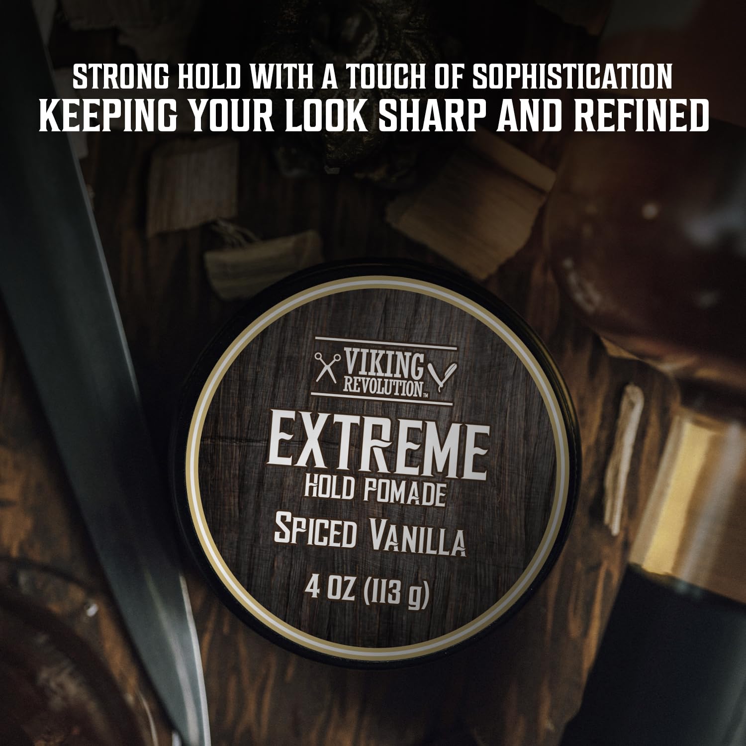 Viking Revolution Spiced Vanilla Hair Pomade for Men - Extreme Hold Hair Gel for Men - Water Based - Extra Firm Mens Hair Pomade - High Shine Mens Hair Cream (4oz)