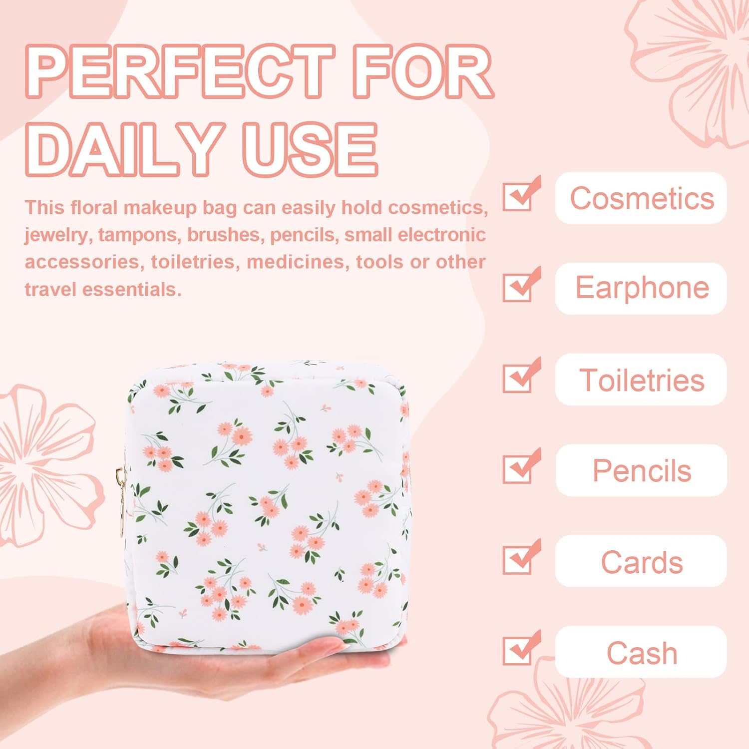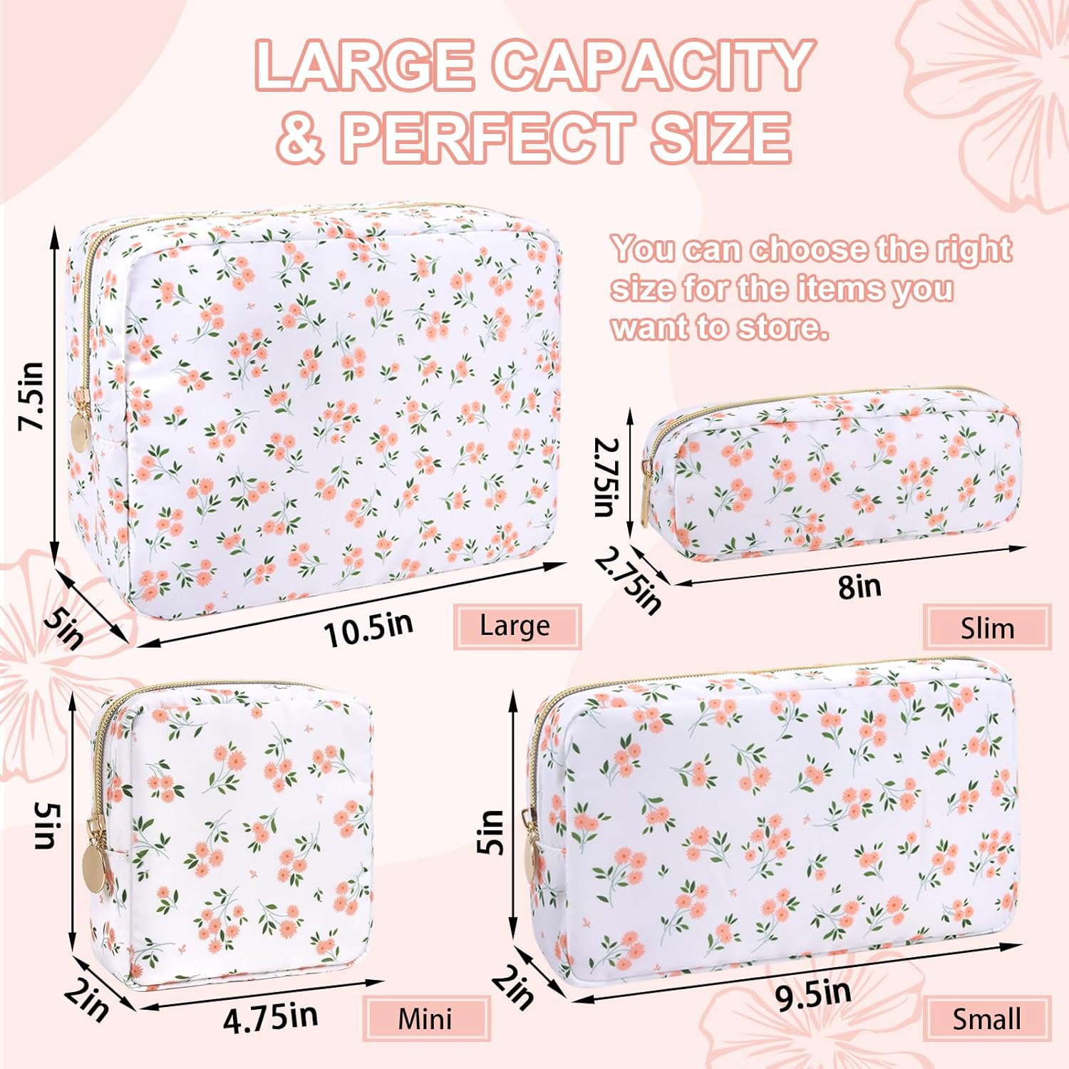 - 【Superior Quality】The floral makeup bag is made of lightweight and durable high quality nylon. It is waterproof and easy to clean, helping to protect your cosmetics and toiletries from water spill accidents.