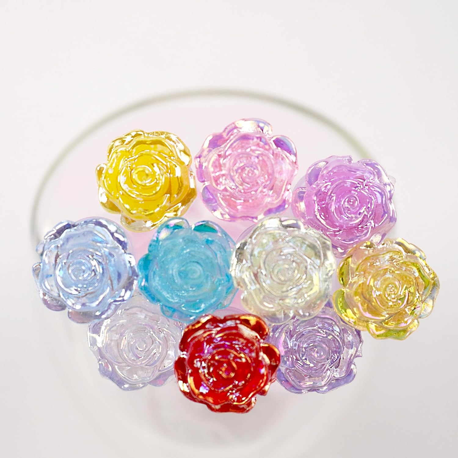 i-Laesh 10Pcs Diamond Disposable Mascara Wands with Tube - Spoolies for Eyelash Extensions, Cleaning & Brow Makeup - Multi-Color Applicator Set (3D Rose)