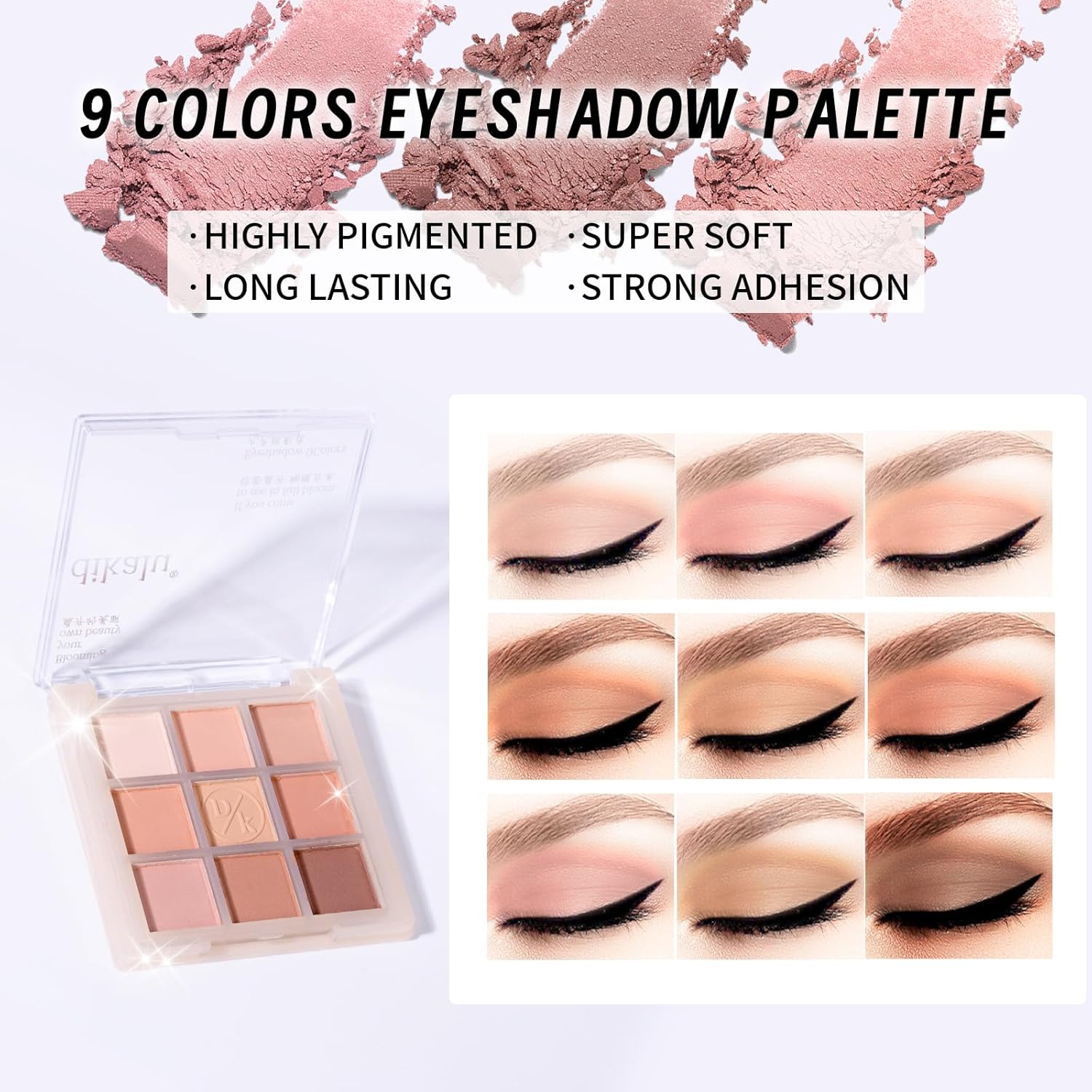 - [ Makeup Set] The ideal starter makeup kit includes 9 colors eyeshadow palette, dual-ended counter and highlighter stick, full coverage liquid foundation, dual-ended eyebrow pencil, eyeliner, waterproof mascara, lip gloss, 5 PCs makeup brushes set, makeup sponge. All women’s makeup essentials are included.