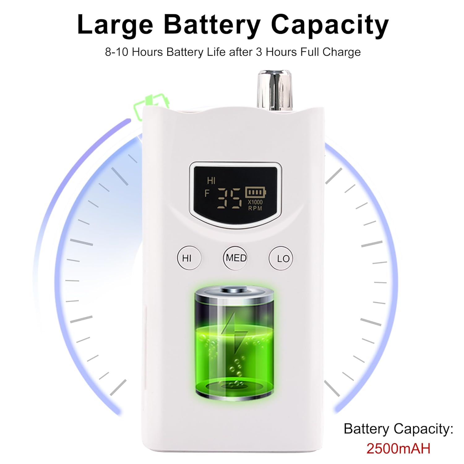 - Nonstop Performance: Our nails machine professional features a built-in rechargeable battery and brushless motor for up to 10 hours of continuous use. With a quick 2-3 hour recharge and an LCD battery status display, it's perfect for hassle-free appointments.