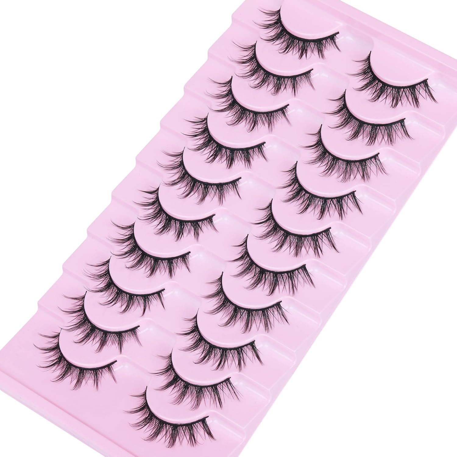 FANXITON Manga Lashes Wispy Natural Look Faux Eyelashes 10 Pairs Asian 3D False Eyelashes 14 mm Cat Eye Lashes Pack