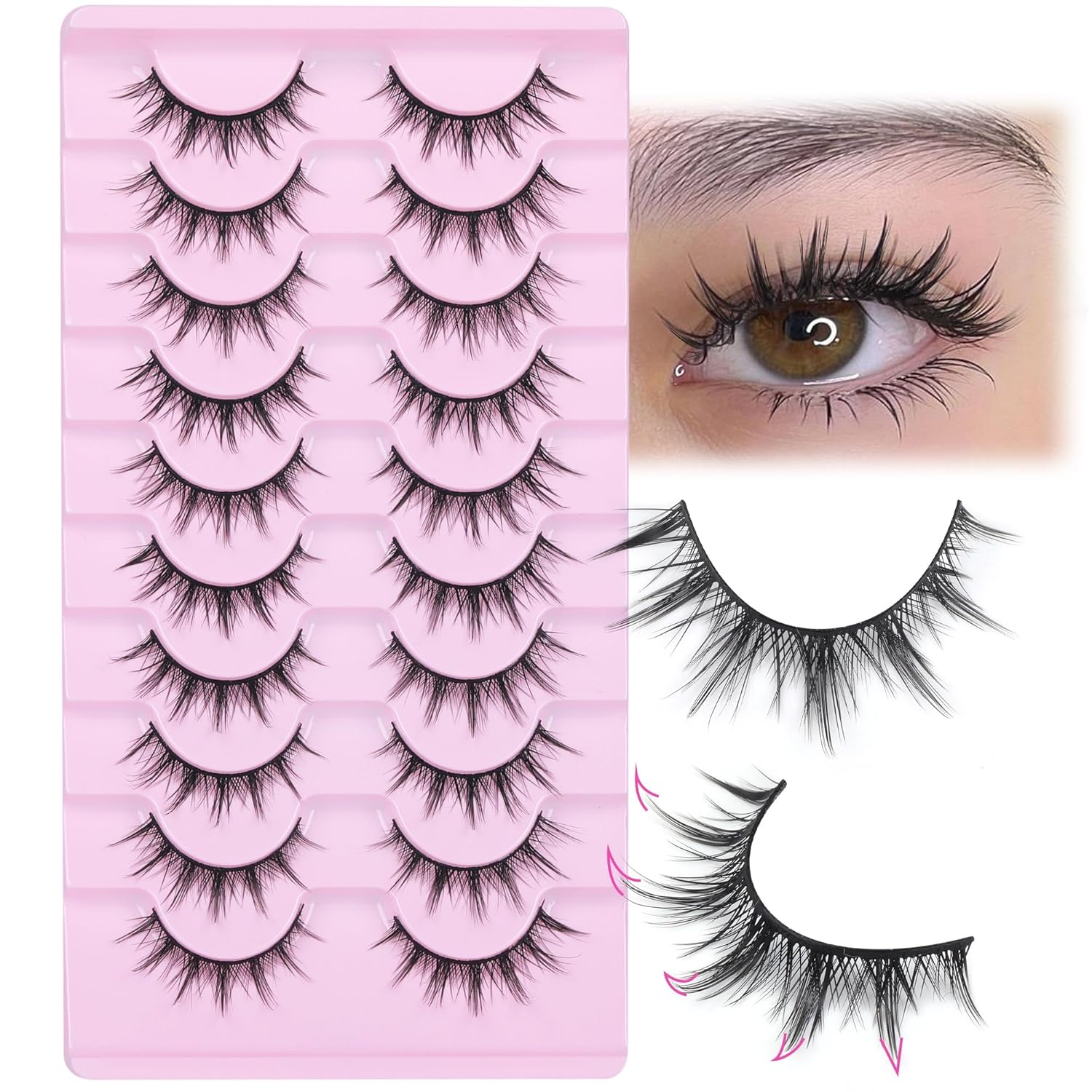 - Natural Look, cat-eye, high-quality synthetic fibers, soft texture, criss-cross, and not heavy on the eyes