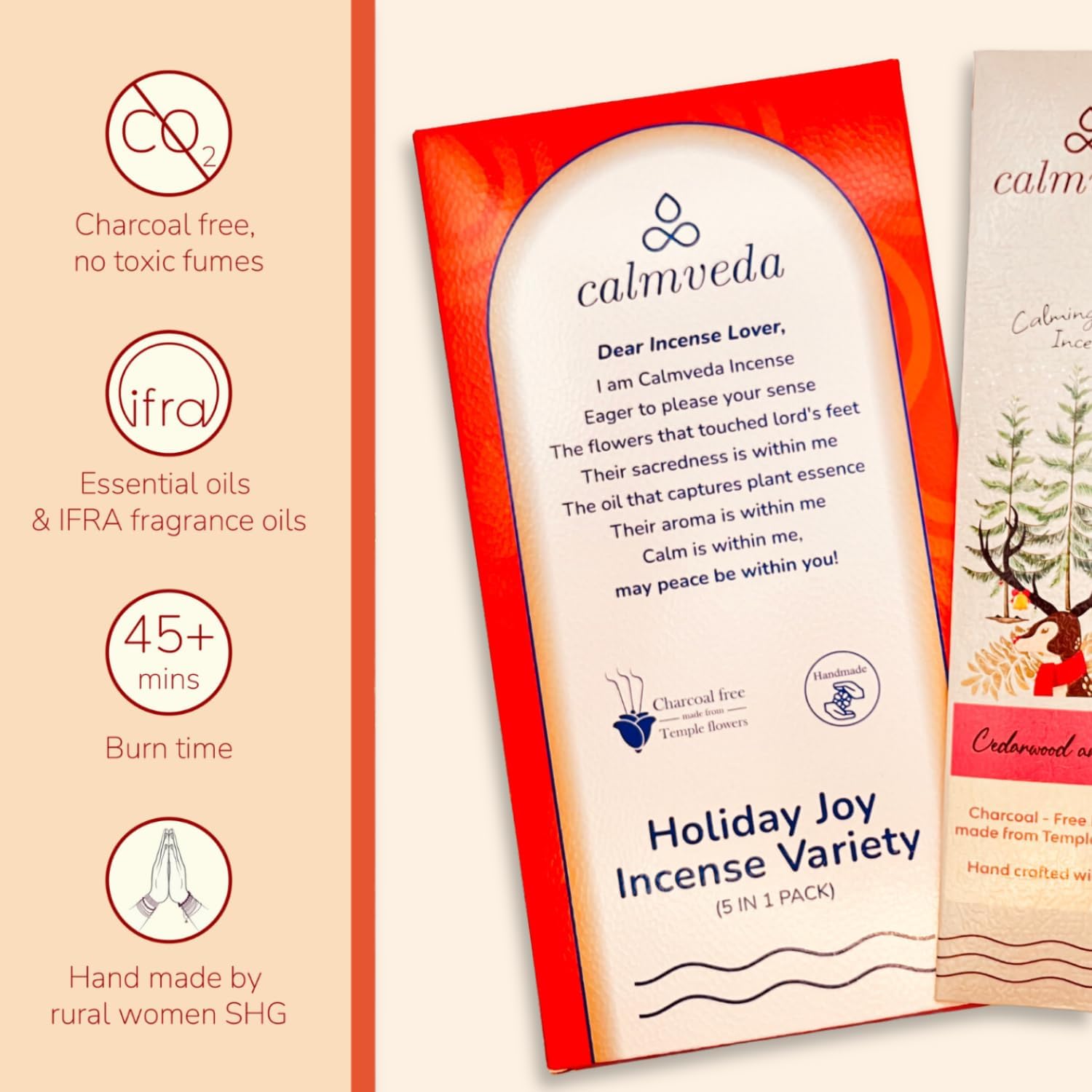 - WHY USE TOXIC CHEMICAL INCENSE? : Calmveda natural incense uses only IFRA compliant fragrances to create a truly beneficial and relaxing experience for you.