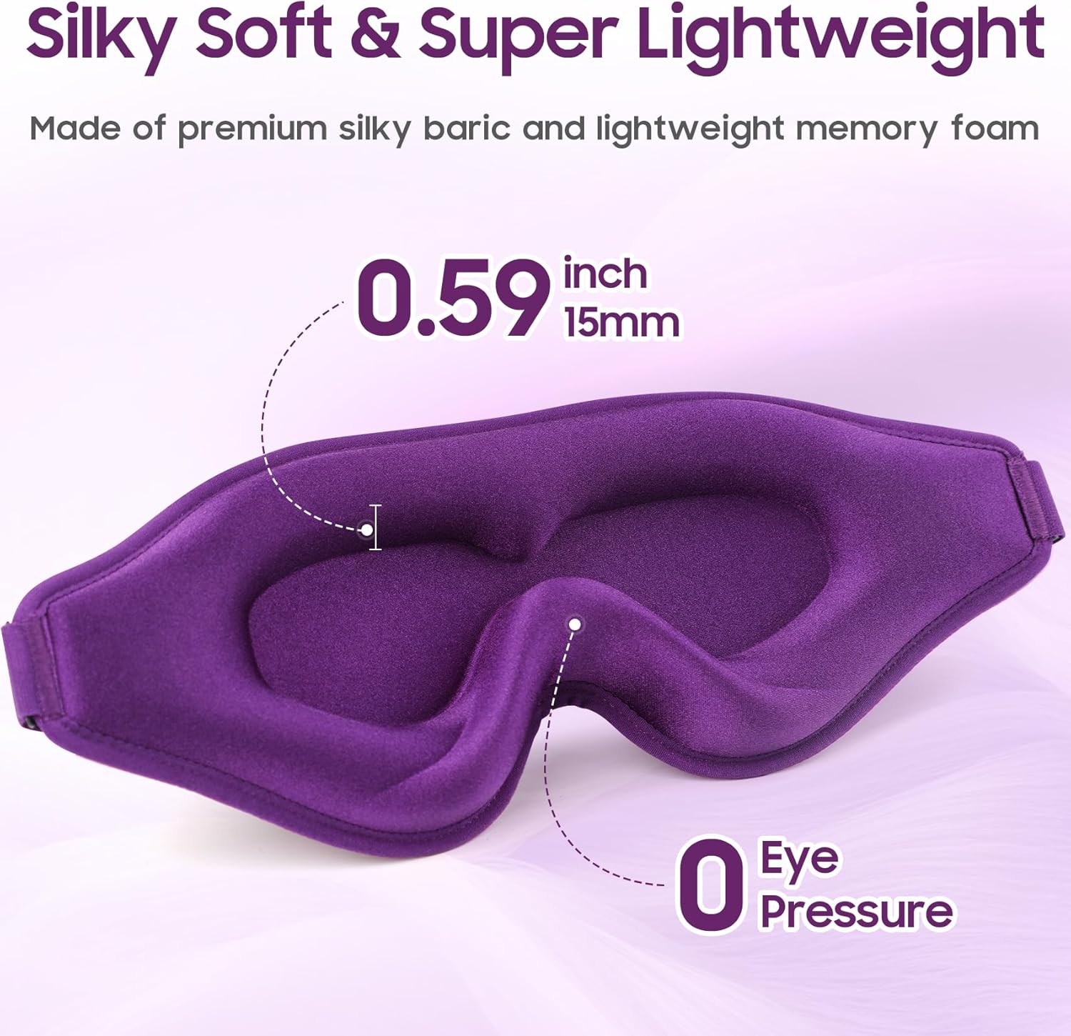 - Silky Soft & Super Lightweight Sleep Mask: Crafted with a luxurious, ultra-soft and skin-friendly fabric, this eye mask for sleeping feels like a gentle caress against your eyes. Designed for ultimate comfort, our sleeping mask is incredibly lightweight (0.078lb only!), so you'll barely feel it on your face. No pressure, just pure relaxation.
