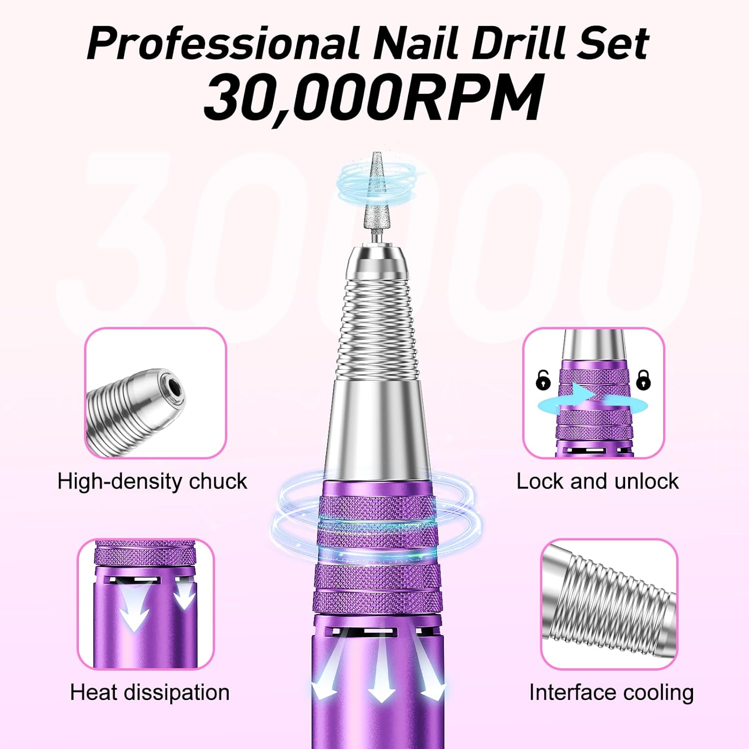 JIASHENG Professional Nail Drill, 30000rpm Electric Nail Drill Machine, Electric Nail File Drills for Acrylic Nails Kit Gel Nails Manicure Pedicure Tools, Purple