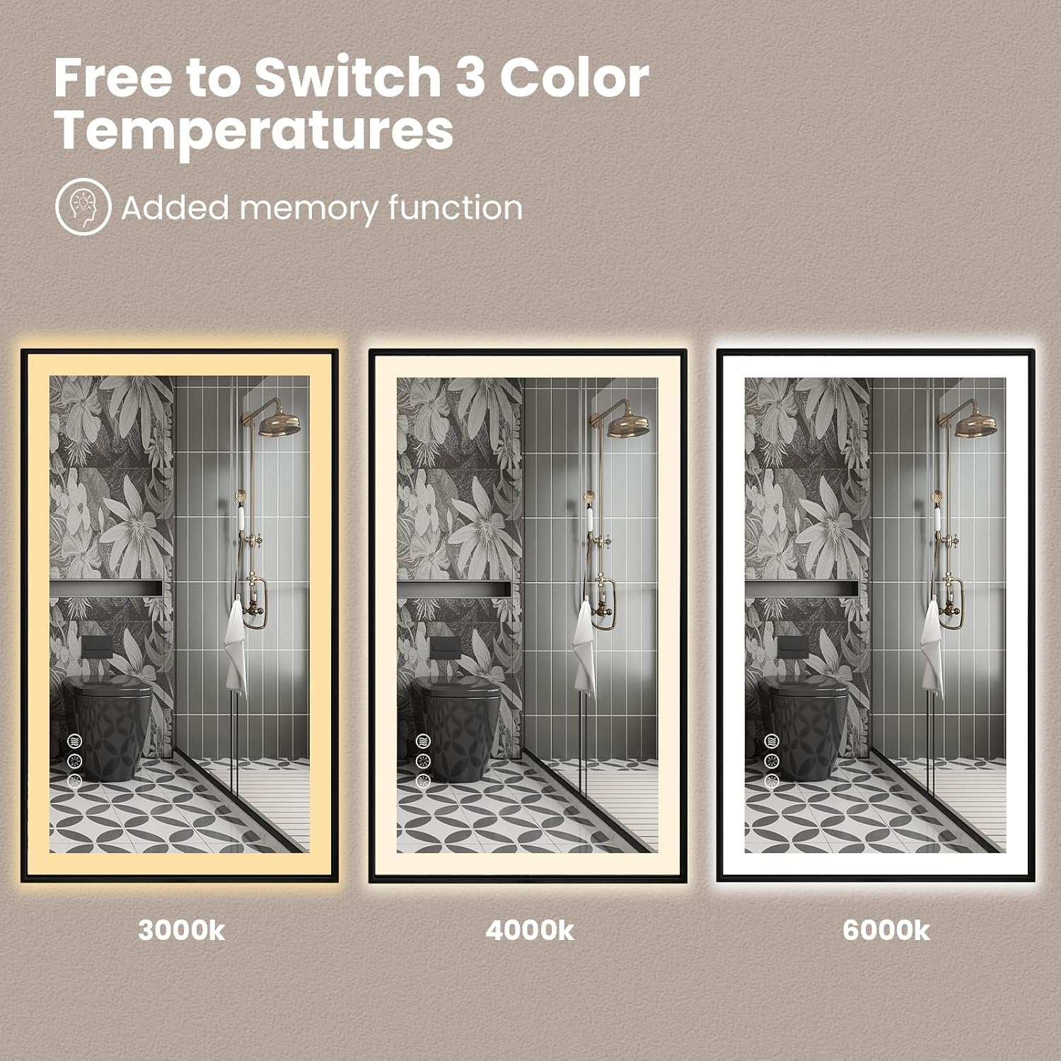 Amorho 30"x 36" LED Bathroom Mirror with Black Frame, Front Light and Backlit(Controlled Separately), Stepless Dimmable, Anti-Fog, Shatter-Proof, 3 Colors, Memory