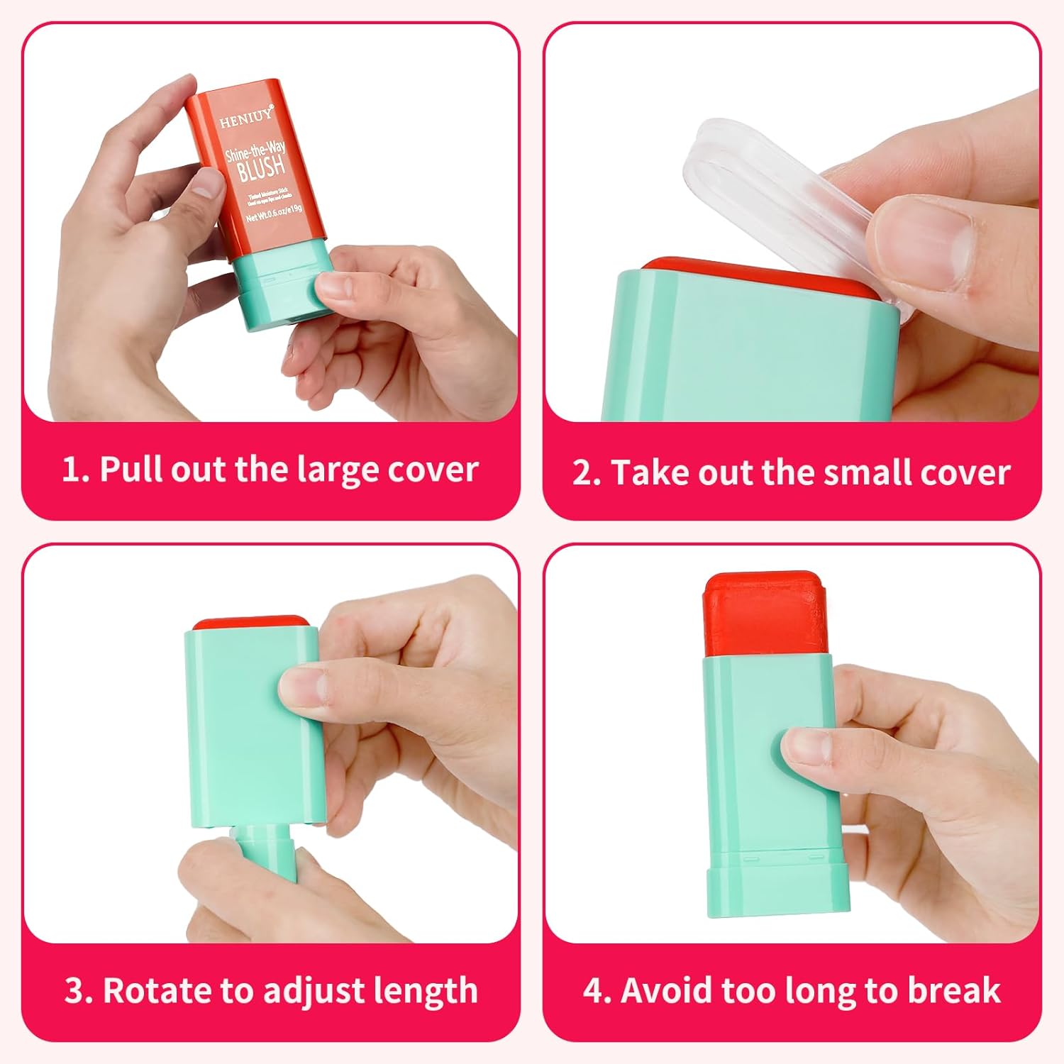 - [Natrual Rich Colors] This creamy blush rocks three shades: pink, red and orange. No matter if you're going for cute and sweet or bold and vibrant, this smooth blush stick has your perfect hue. The creamy blush can easily create a natural-looking and pretty complexion with just one swipe, making your makeup more natural and vibrant.