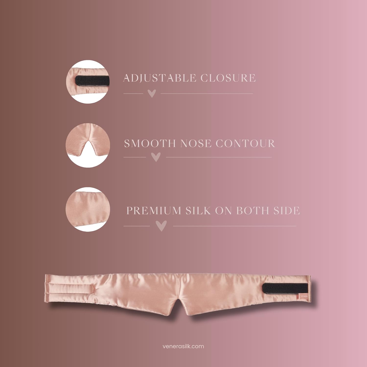 - Fully Adjustable: The wide cushioned Vénera Silk Cloud Mask confidently fits all head sizes with its fully adjustable design. It is highly effective in blocking out all sleep-interrupting light and remains securely on your face in all sleep positions, making it the perfect choice for side sleepers.