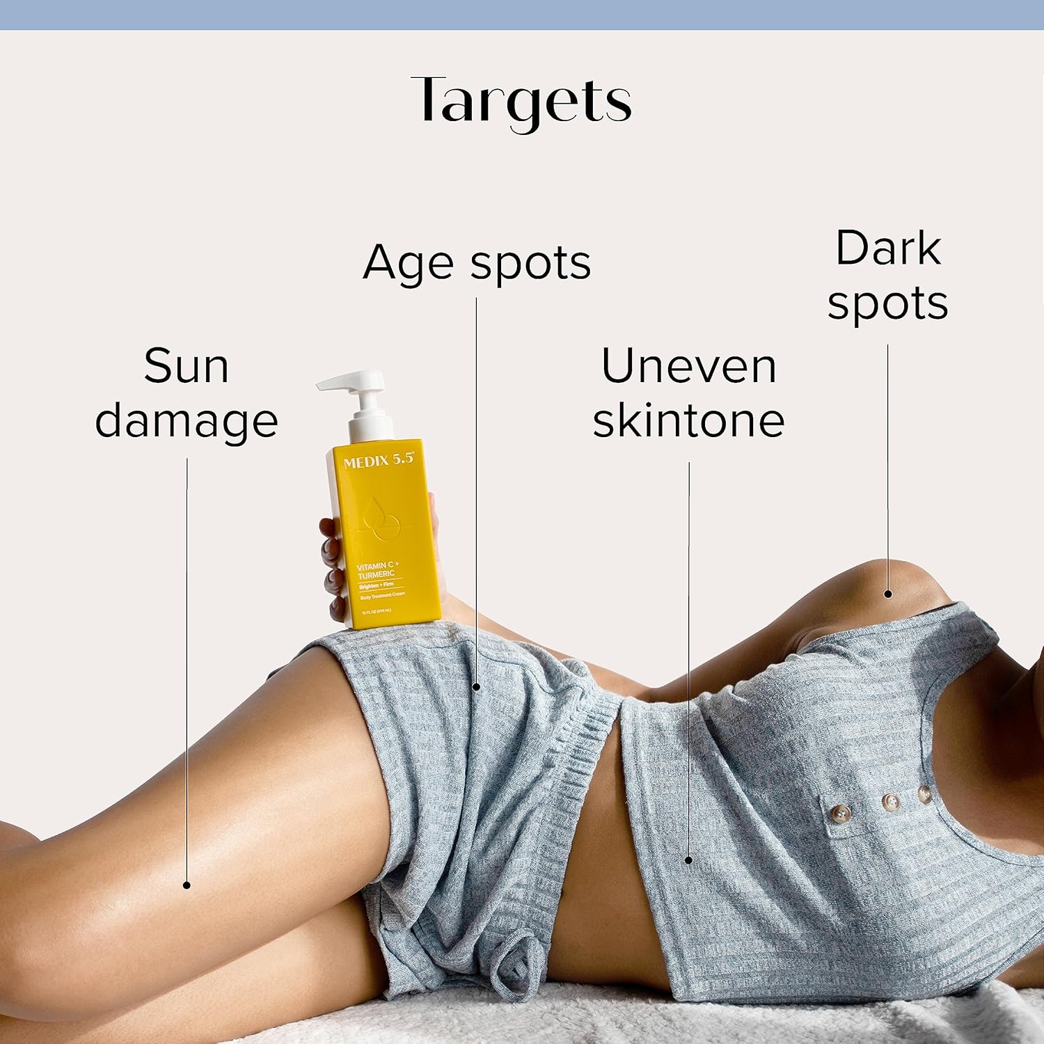 - RADIANT SKIN β Medix 5.5 Vitamin C Cream Brighten + Firm Body Lotion is formulated with the perfect combination of effective anti aging + brightening ingredients, including Shea Butter, Aloe Vera, Ferulic Acid, Turmeric, Vitamin E, Glycerin, Ginger, & More. Shea Butter deeply moisturizes the skin, improves elasticity, & provides a protective barrier to help prevent moisture loss. Vitamin E helps protect skin against free radicals + UV Damage. Aloe Vera helps calm + hydrate the skin.