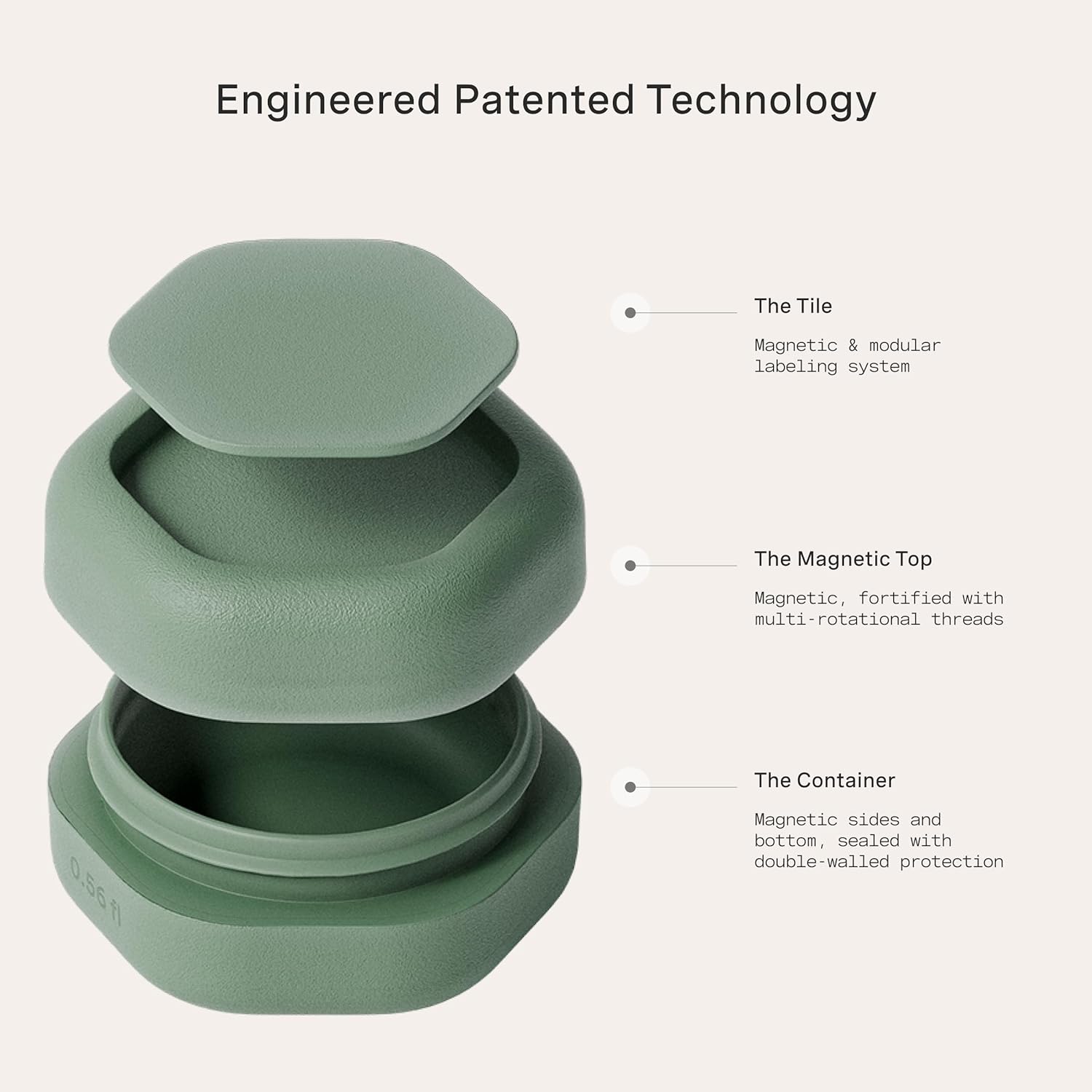 - PATENTED MAGNETIC DESIGN - Designed for seamless storage, our travel capsules feature a magnetic design that connects each container vertically or horizontally. They include magnetic labels that seamlessly swap between The Flex Small, The Flex Medium, and The Flex Large Capsules.
