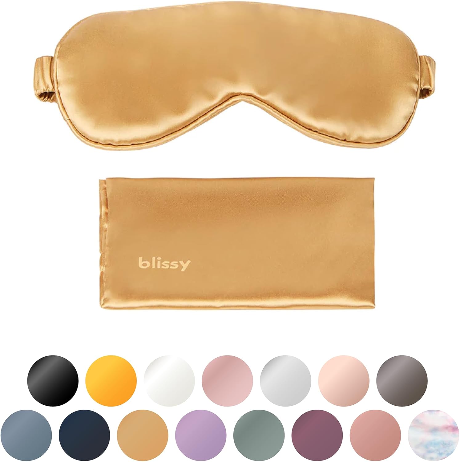 Blissy Silk Sleep Mask - Silk Eye Sleeping Mask for Women & Men for Total Blackout - 100% Pure Mulberry Silk, 22 Momme 6a Fibers - Blindfold Silk Sleep Mask Side Sleeper Eye Cover (Gold)