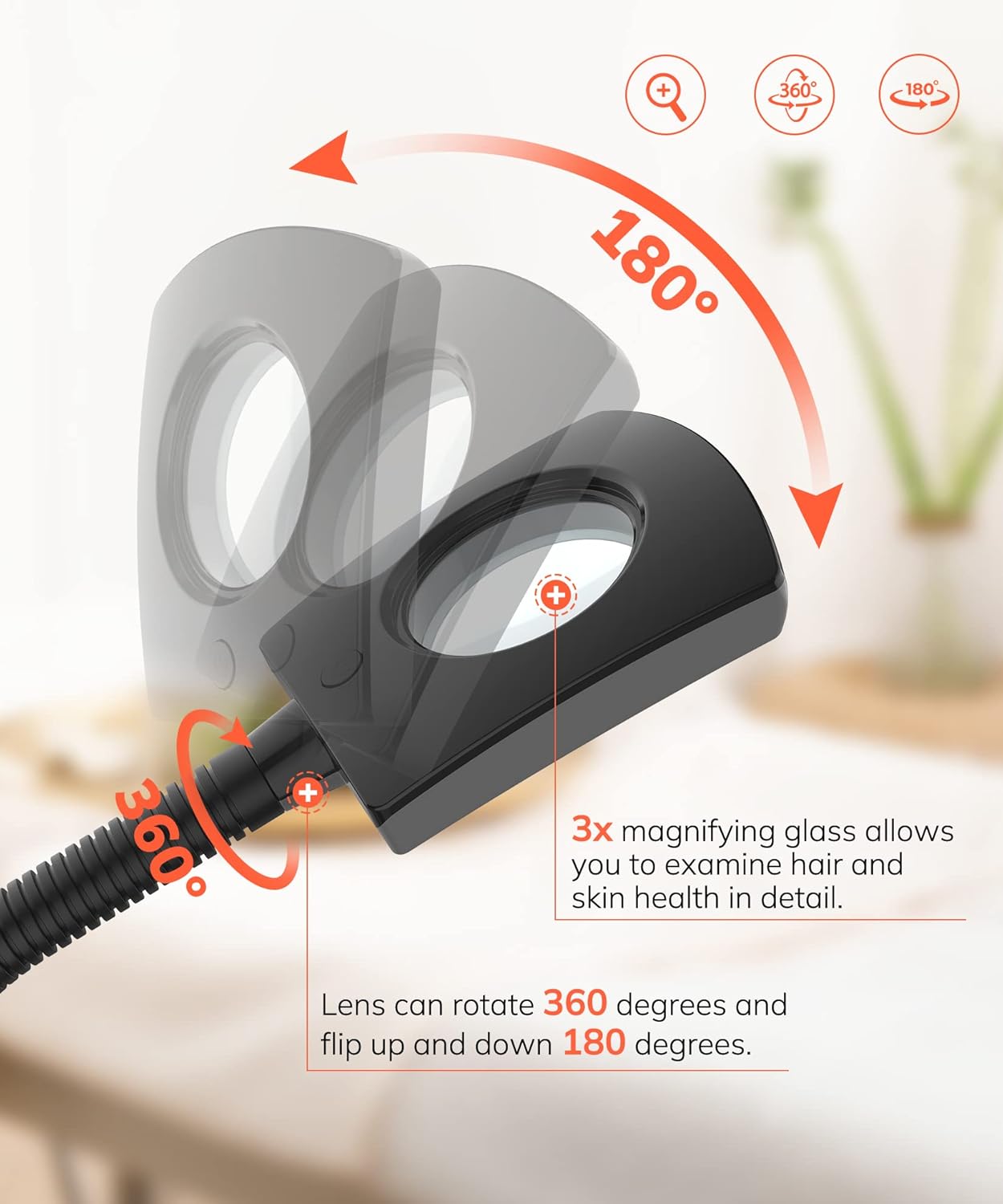 - ✅3X Magnifying Lamp: LED light skin beauty tool with 3X magnifying lens, soft glow, no pollution, no glare, won't hurt your eyes. High quality and bright steamer facial magnifier can help you see details more clearly.