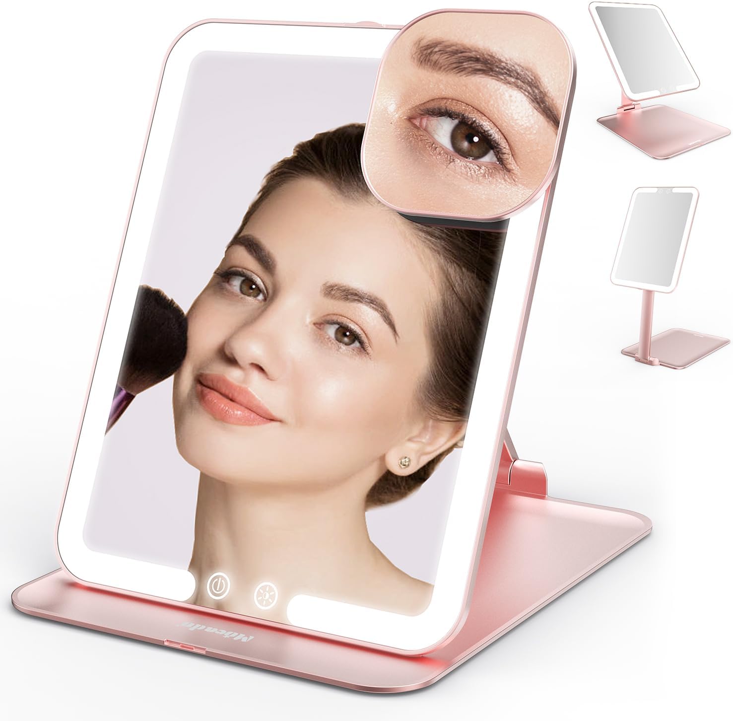Mocado Travel Makeup Mirror with Light, Tripple Folding Vanity Mirror with Lights, 3 Colors Lighted Makeup Mirror, 1500mAh Rechargeable, Memory Function, Freely Adjust Height and Angle(Rose Gold)