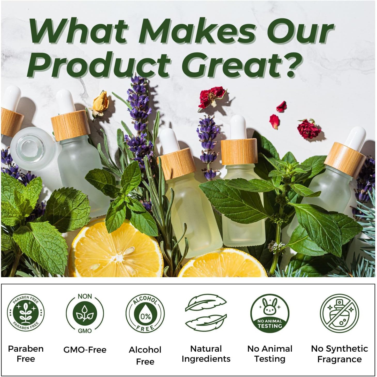 - GMO Free Plant Extracts: Natural derivatives from plant sources, 10ml each. No alcohol, additives, fillers added. External uses only