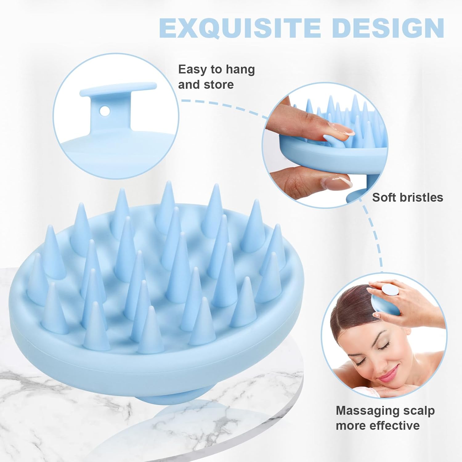 Silicone Scalp Massager, Scalp Scrubber for Hair Growth with Soft Bristles, Scalp Exfoliator Brush Dandruff Removal Shampoo Brush for Wet Dry Scalp Care (Light Blue)
