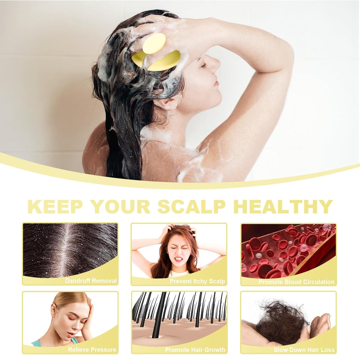 Silicone Scalp Massager, Scalp Scrubber for Hair Growth with Soft Bristles, Scalp Exfoliator Brush Dandruff Removal Shampoo Brush for Wet Dry Scalp Care (Light Yellow)