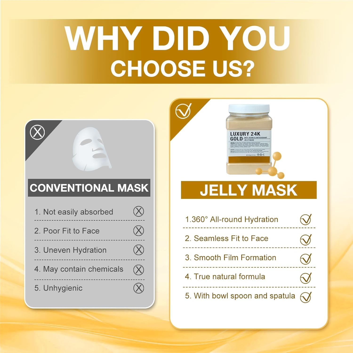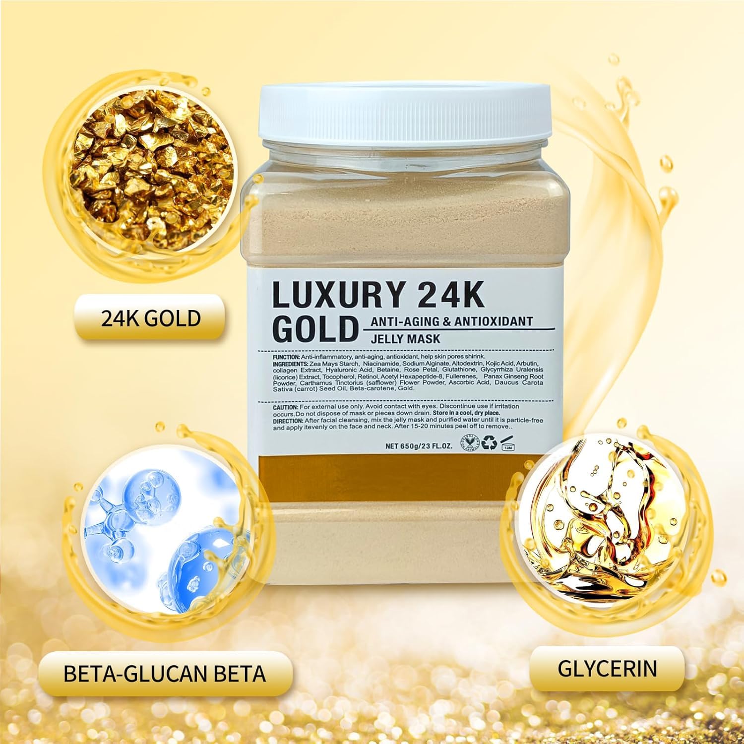 Jelly Mask for Facials Professional, Hydrating & Moisturizing Peel-Off Natural Gel Face Mask SkinCare, Professional Spa Use Jelly Face Masks, Deep Hydration & Glow 23 Fl Oz (24K Gold)