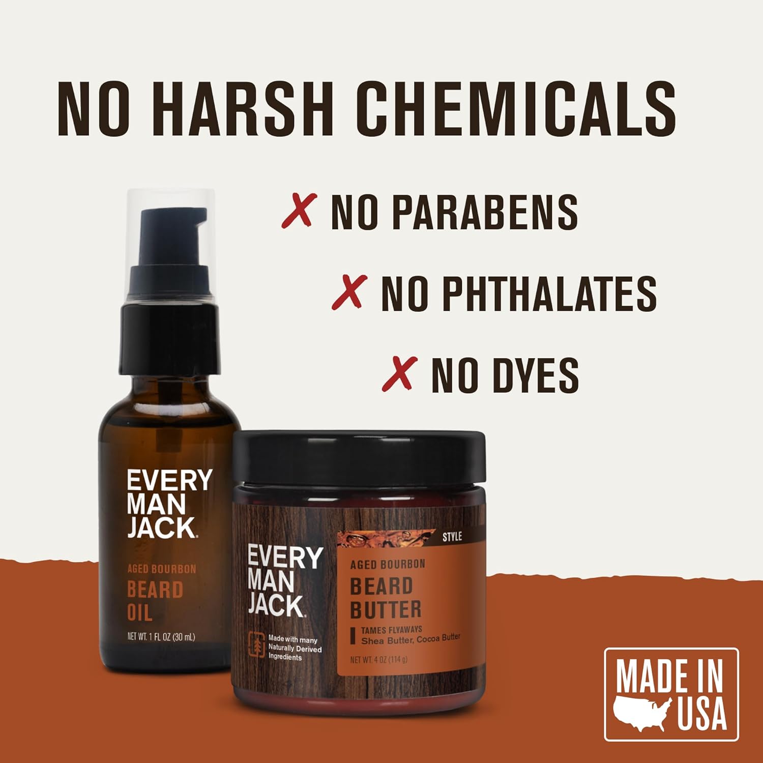 Every Man Jack Beard Oil & Beard Butter Bundle - Aged Bourbon Fragrance - Rejuvenates, Hydrates & Styles Dry Beards - Naturally Derived with Cocoa Butter and Shea Butter