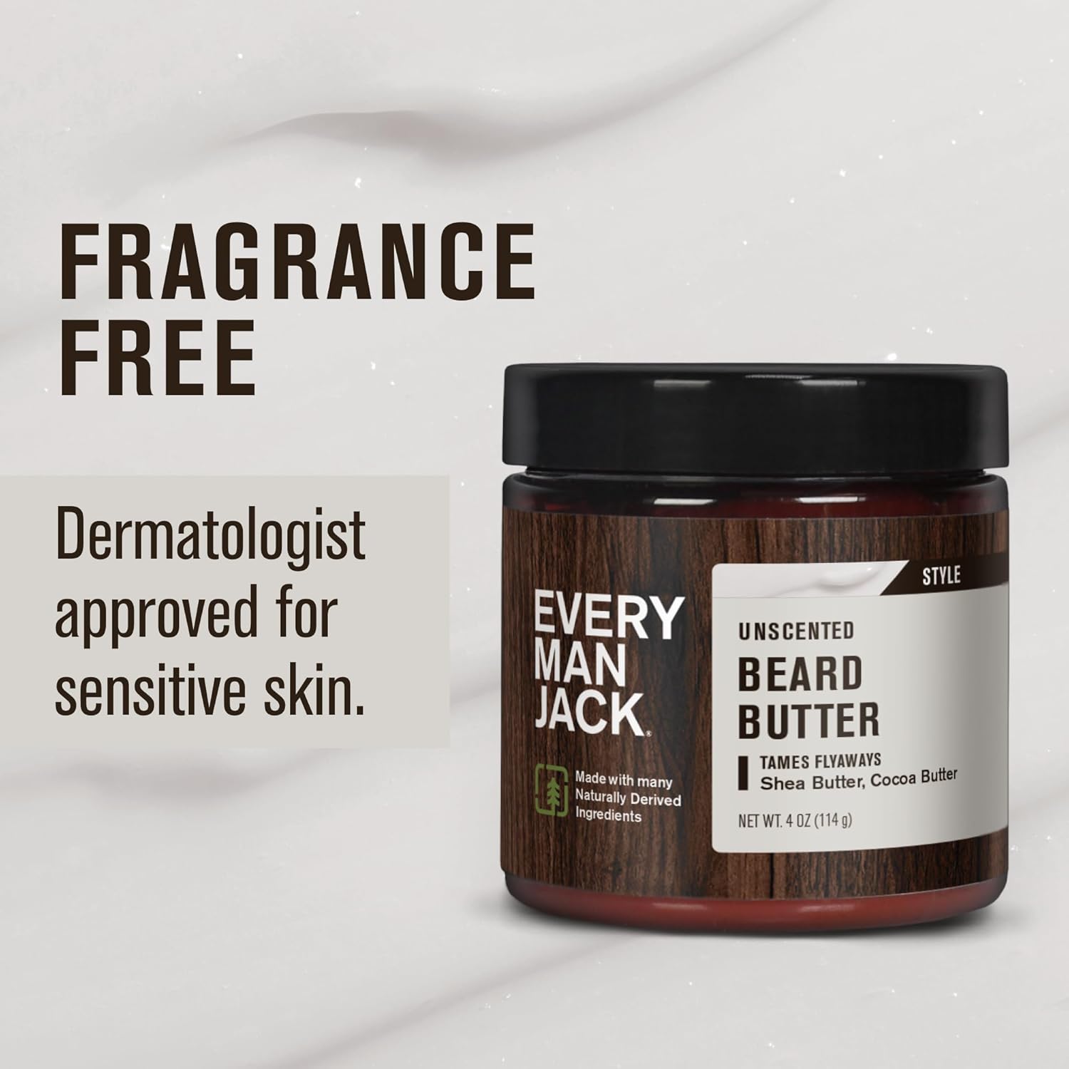 Every Man Jack Unscented Beard Butter - Fragrance Free for Sensitive Skin - Rejuvenates, Hydrates, and Styles Dry, Unruly Beards - Naturally Derived with Shea Butter and Coconut Oil - 4oz (2 Pack)