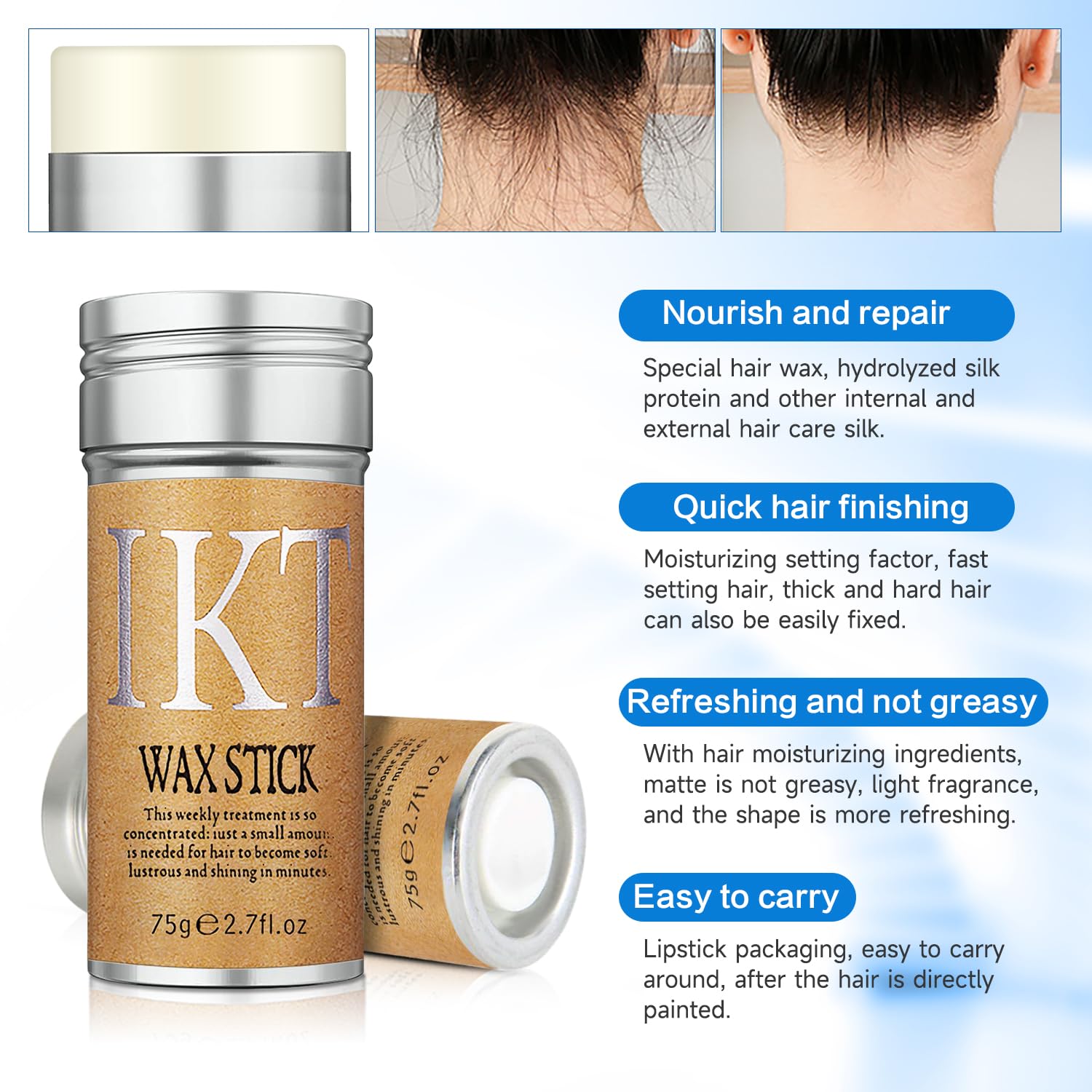 - 【Hair Finishing Stick】 Our hair finishing stick is small and easy to put into your pocket. You can quickly comb your messy hair anytime and anywhere to prevent your hair from drying out and tangling