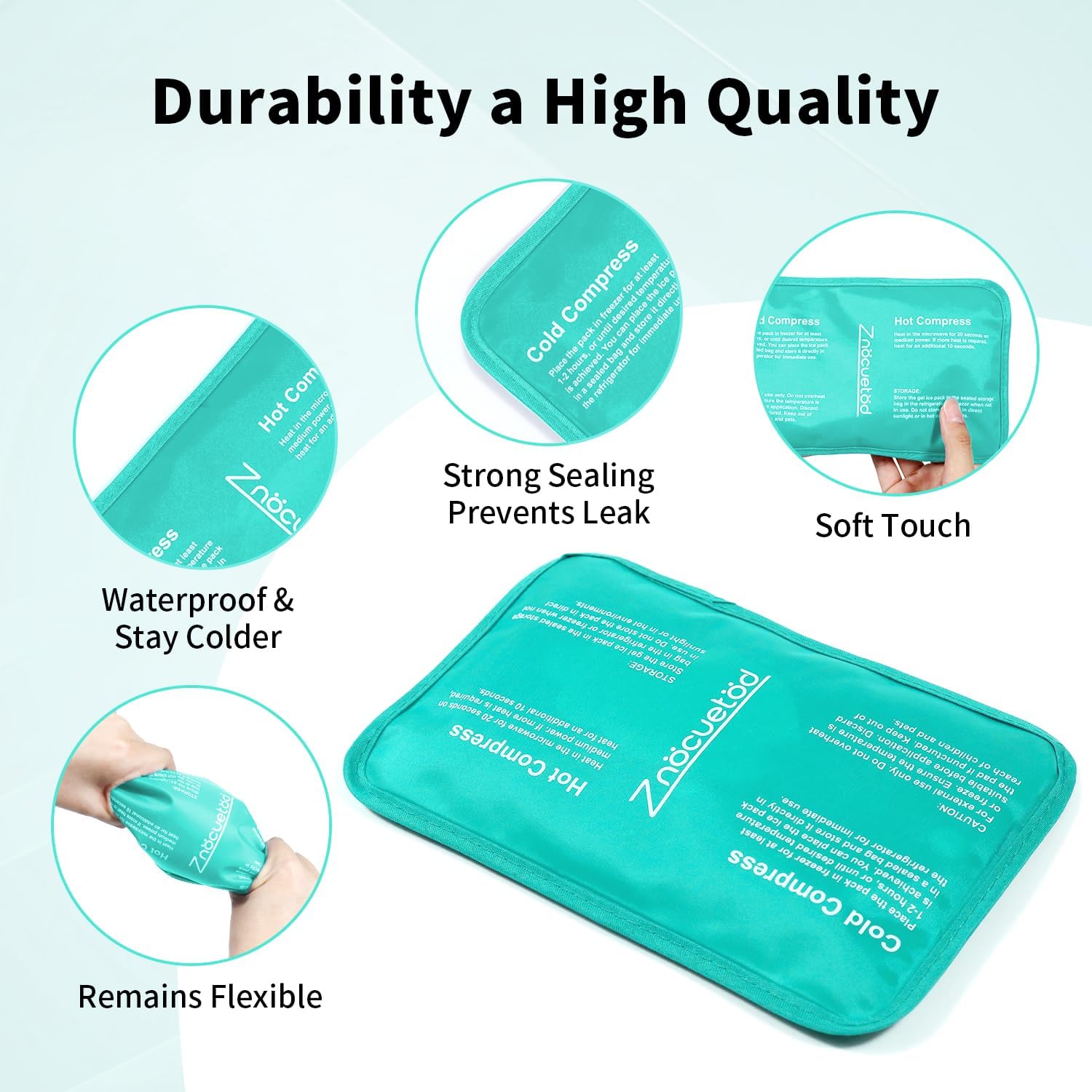 - Soft & Reusable Ice pack : Filled the flexible gel into a high quality nylon pouch with fabric backing, and this gel cold packs were double sealed and 100% pressure testing, no break, no leakage, reusable and microwavable. Designed with one high quality nylon side and one plush side for different temperature preference.