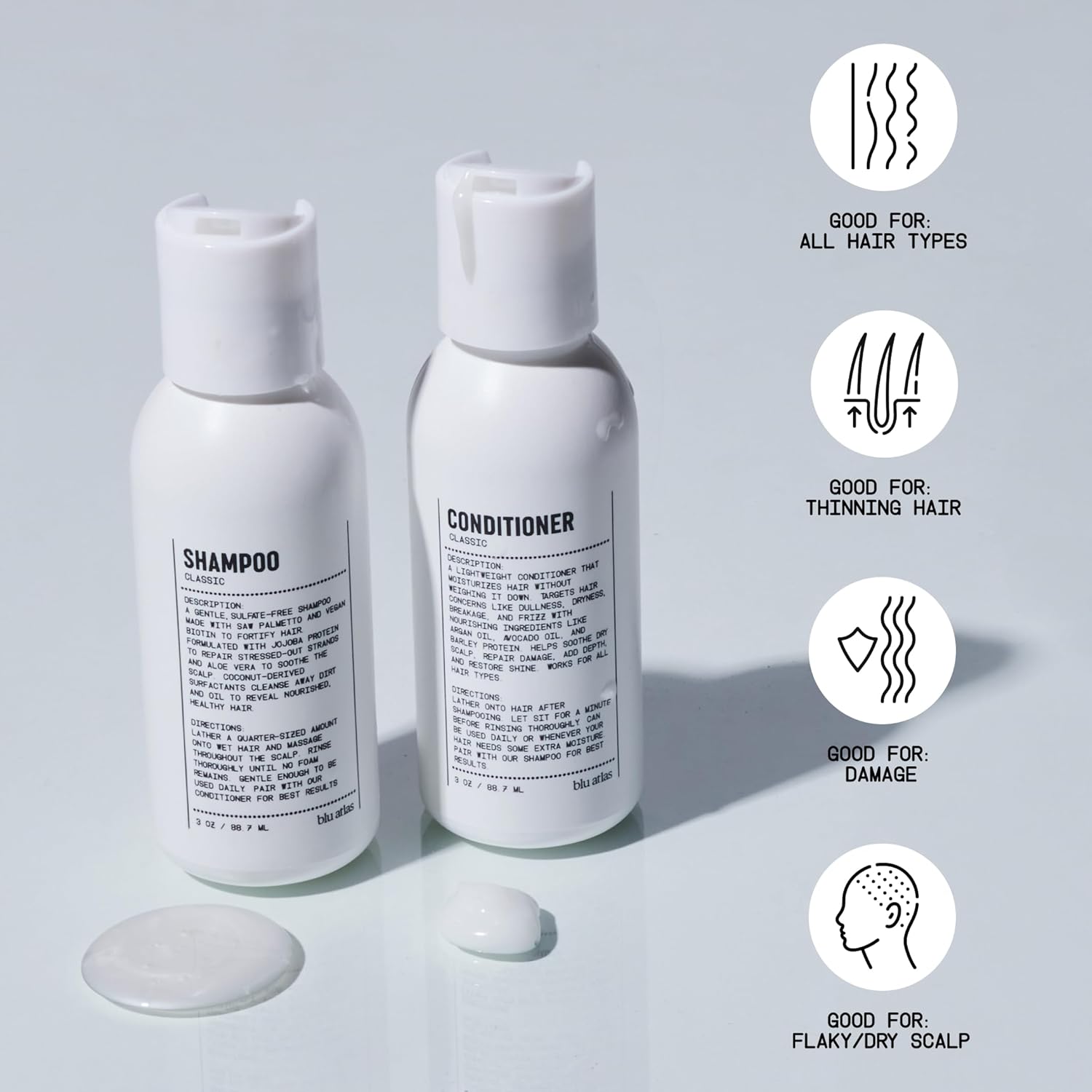 Blu Atlas Travel Size Shampoo & Conditioner Set for Men – TSA Approved, 3 oz Each – Natural, Sulfate-Free, Paraben-Free – Clean Ingredients – Classic Scent – Made in America