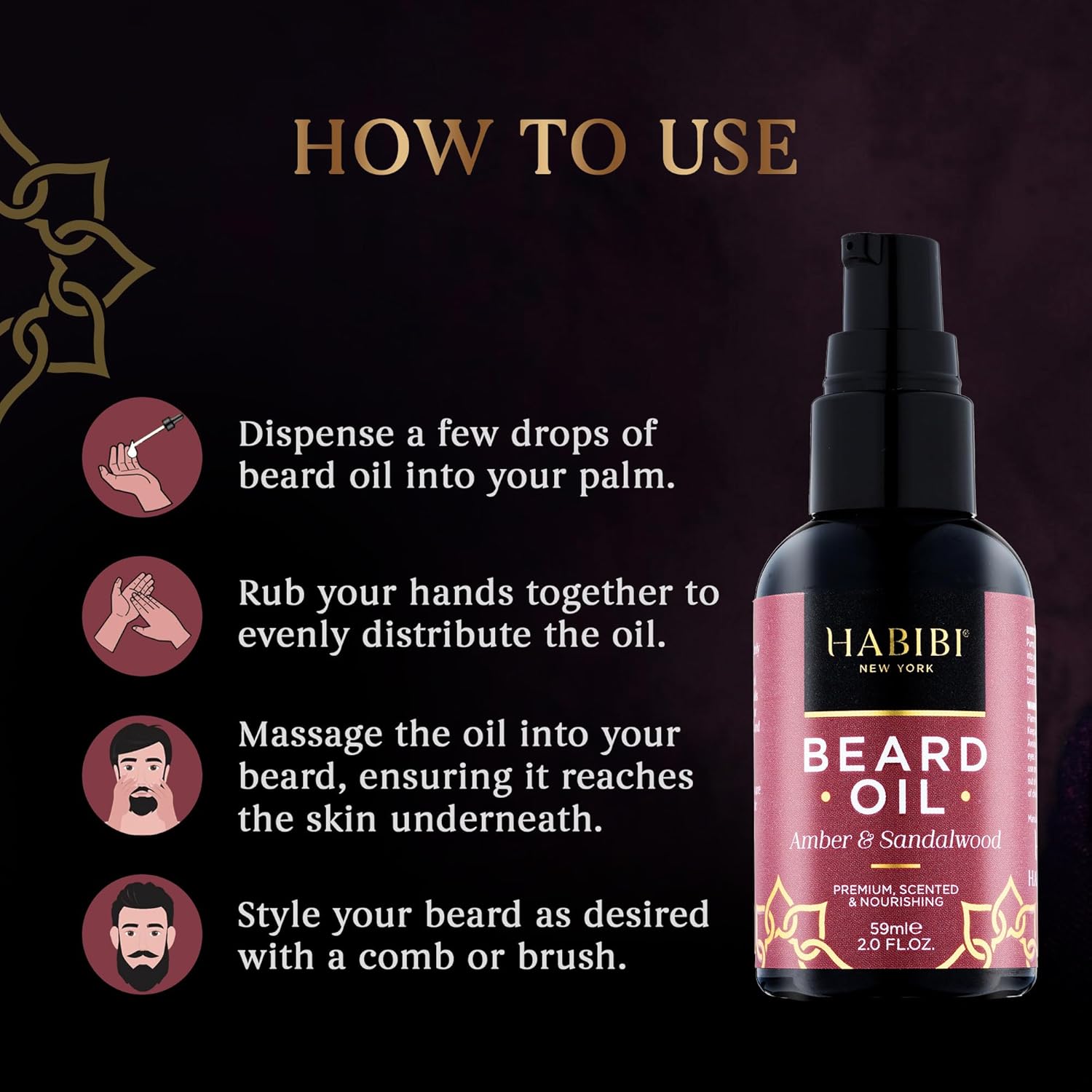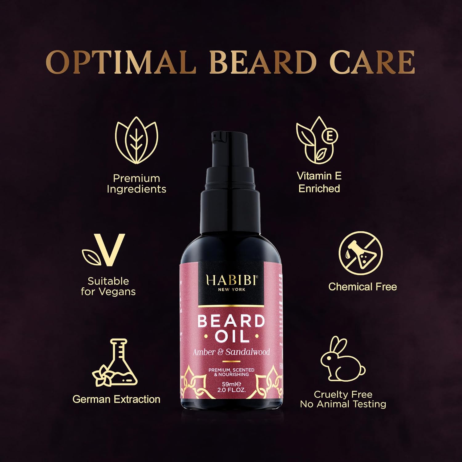 H HABIBI Amber & Sandalwood Beard Oil – 2.0 Fl. Oz Naturally Derived Beard Growth Oil for Men, Beard Care Essential – Hydrates, Nourishes & Promotes Healthy Growth, Made in USA