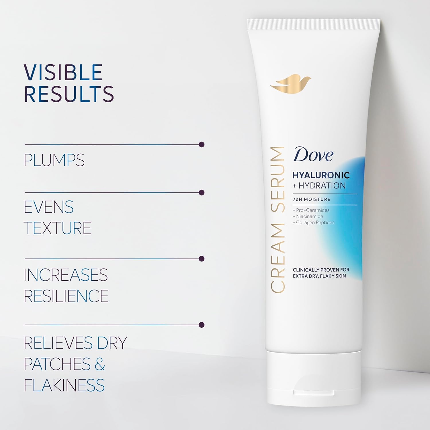 Dove Cream Serum Hyaluronic + Hydration for Extra Dry, Flaky Skin, with Pro-Ceramides, Niacinamide and Collagen Peptides Lotion, 8 oz