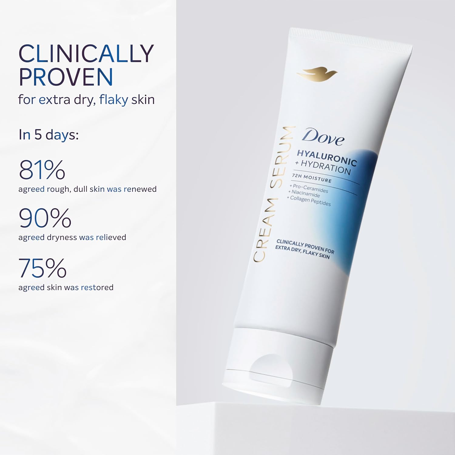 - SCIENCE-BACKED: Dove Cream Serums are clinically tested for efficacy and safety for all skin types and tailored to include powerful ingredients scientifically evidenced to provide visible benefits to skin.