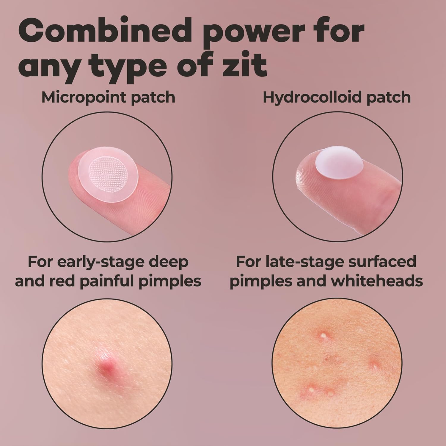 - Fast-Acting Microdart Acne Patch. Our OMMA micropoint acne patch works really well for you on deep cystic acne. You will love this pimple patches for face due to our patented microcrystals. They penetrate the deeper layers of your skin to alleviate pain and the redness of the zit! Our Korean zit patches quickly eases the swelling of early-stage deep and painful zits!