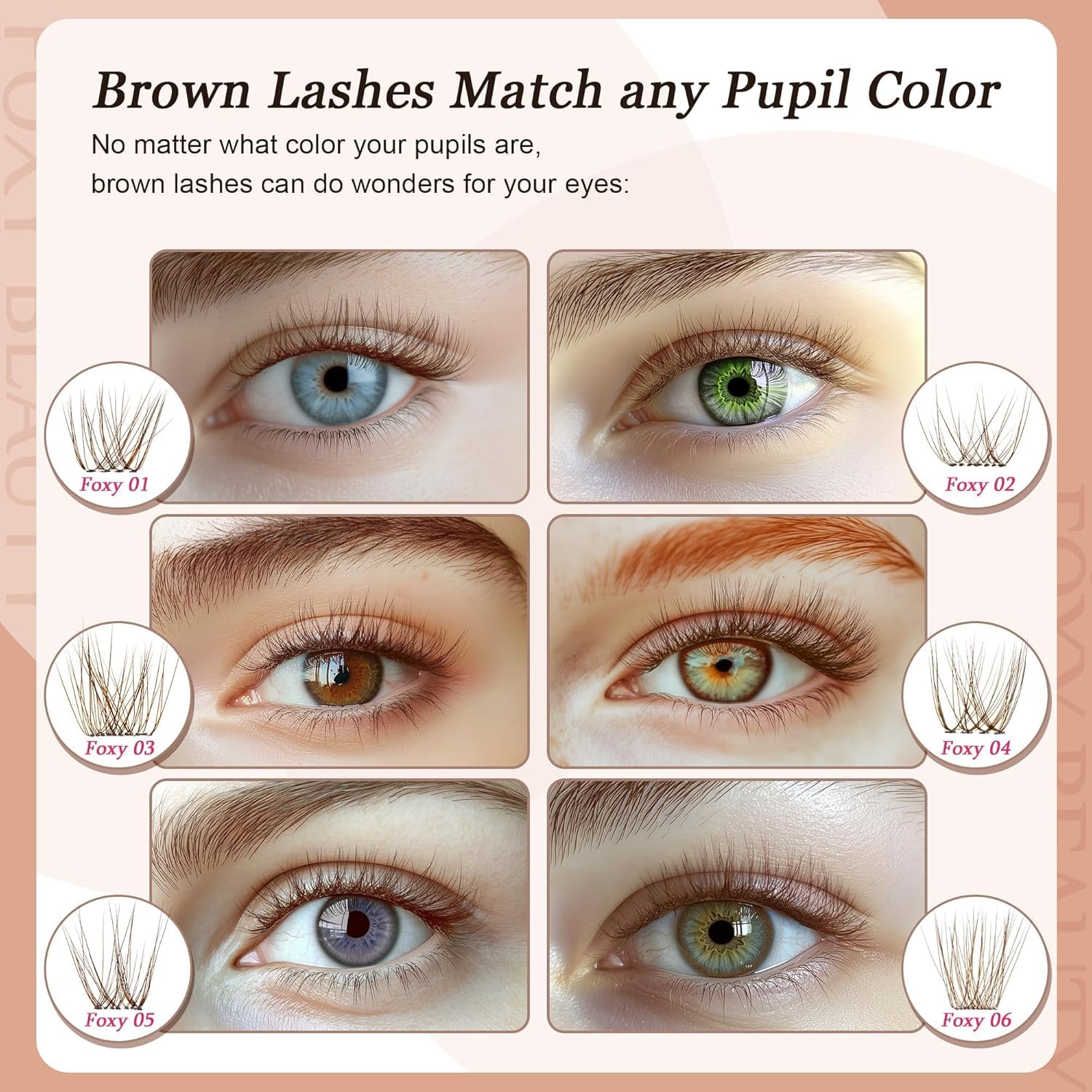 - Flattering on light eyes/complexions:Compared to traditional black lashes clusters, dark brown lash cluster is easy to make you eyes look so much Charming and elegant.Dark brown cluster lashes are suitable for people who have brown, blond, red or other light color hair and eyebrows,create a gentle, understated effect, perfect for those who prefer a more subdued yet elegant look