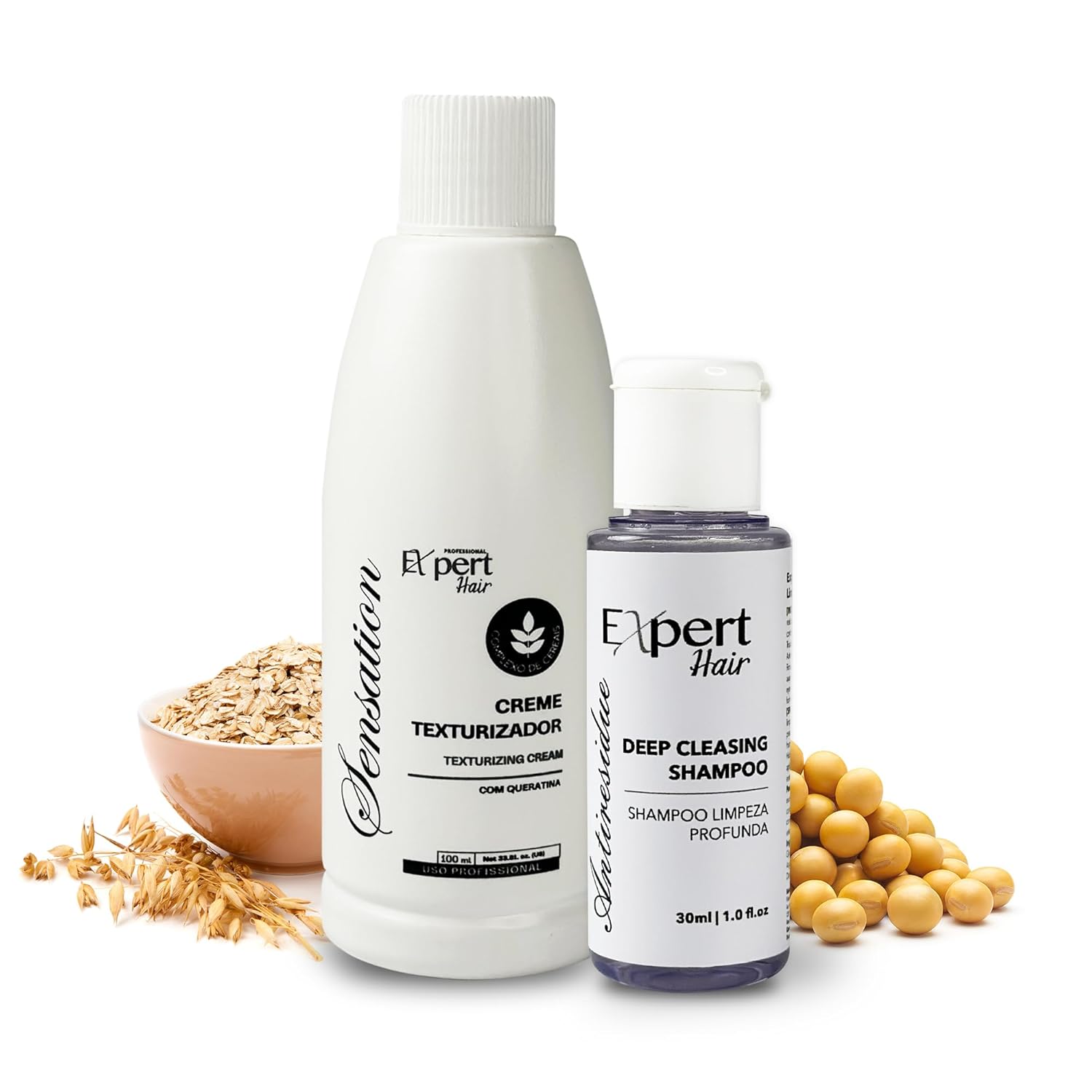 Expert Hair Sensation Keratin Hair Treatment Brazilian 100ml + Deep Cleansing Shampoo 30ml - Anti Frizz, Brazillian Smoothing Keratin- Keratina Para Alisar El Pelo, Emulsion Zero Alisado –Complete Set