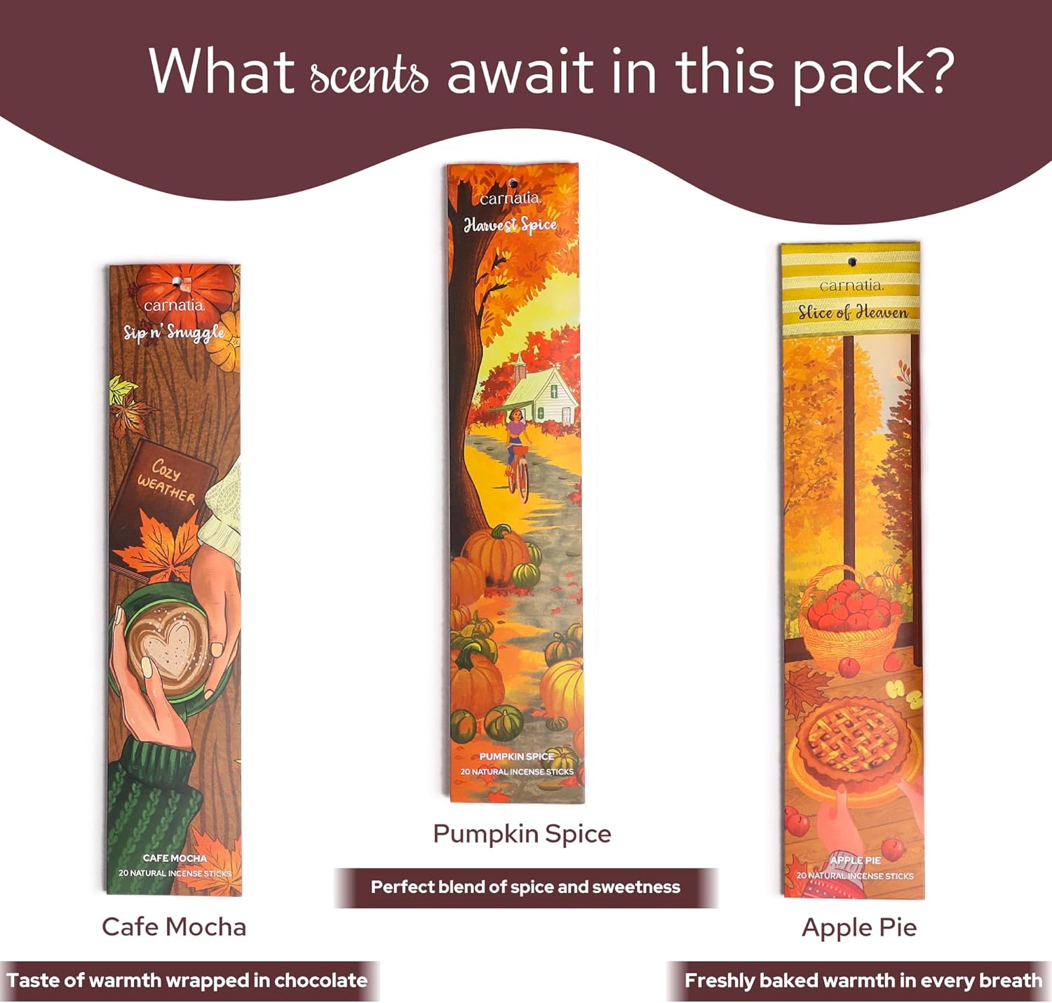 Carnatia Fall Whispers Incense Set – 6 Autumn Scents for Seasonal Warmth | Cozy Comfort & Inviting Ambience | Premium Quality Incense Sticks for Fall Vibes