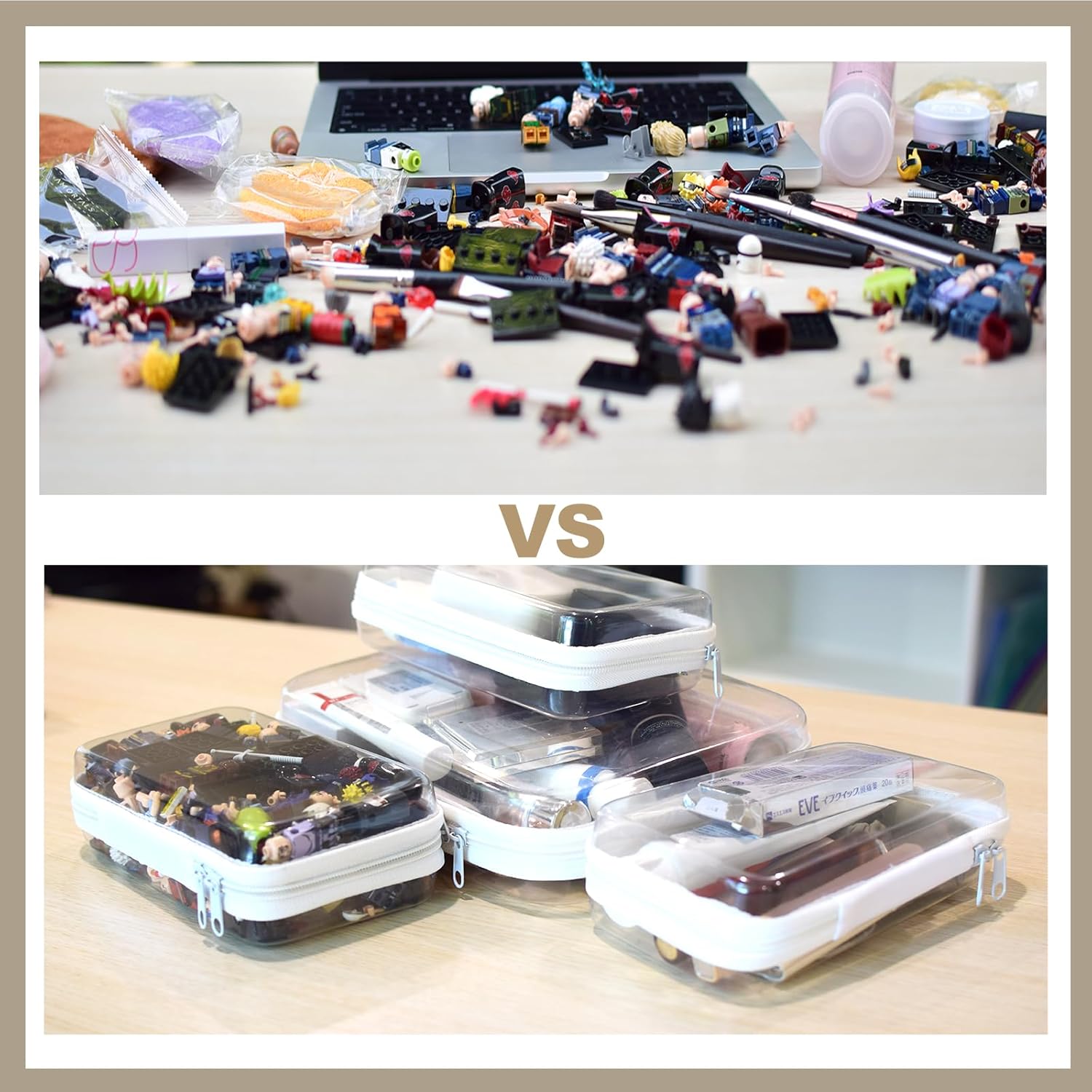 - See Everything at a Glance. Made from high-clarity transparent material, each zipper pouch lets you easily find what you need—saving time while packing, traveling, or organizing your daily carry.