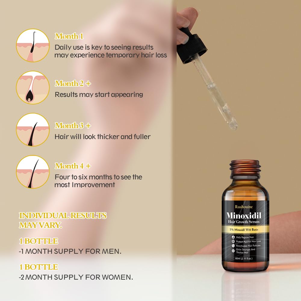 - Promotes Hair Growth: Our 5% Minoxidil Hair Growth Serum is designed with potent ingredients to nourish and activate hair follicles, encouraging natural hair regrowth. Say farewell to thinning hair and welcome a fuller, healthier head of hair.