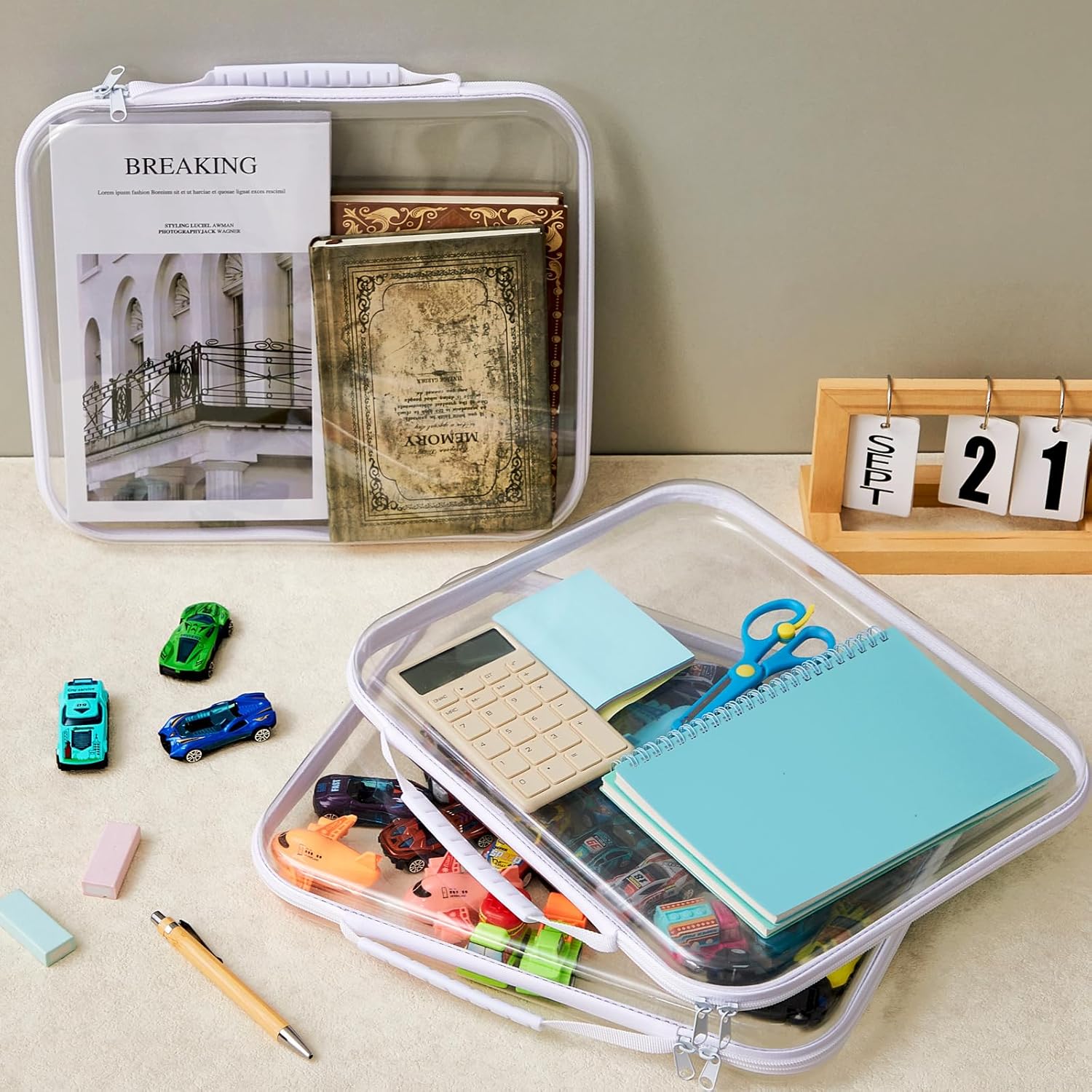 - Wide Range of Scenarios: these clear hard zipper cases offer a flexible solution for organizing everything from toiletries and cosmetics to office supplies and electronics; Their robust design keeps your essentials secure, making them suitable for use in classrooms, offices, bedrooms, bathrooms, laundry rooms, kitchens, craft spaces, and garages; Whether at home or outside, work, these cases adapt to your needs, bringing order to every corner of your life
