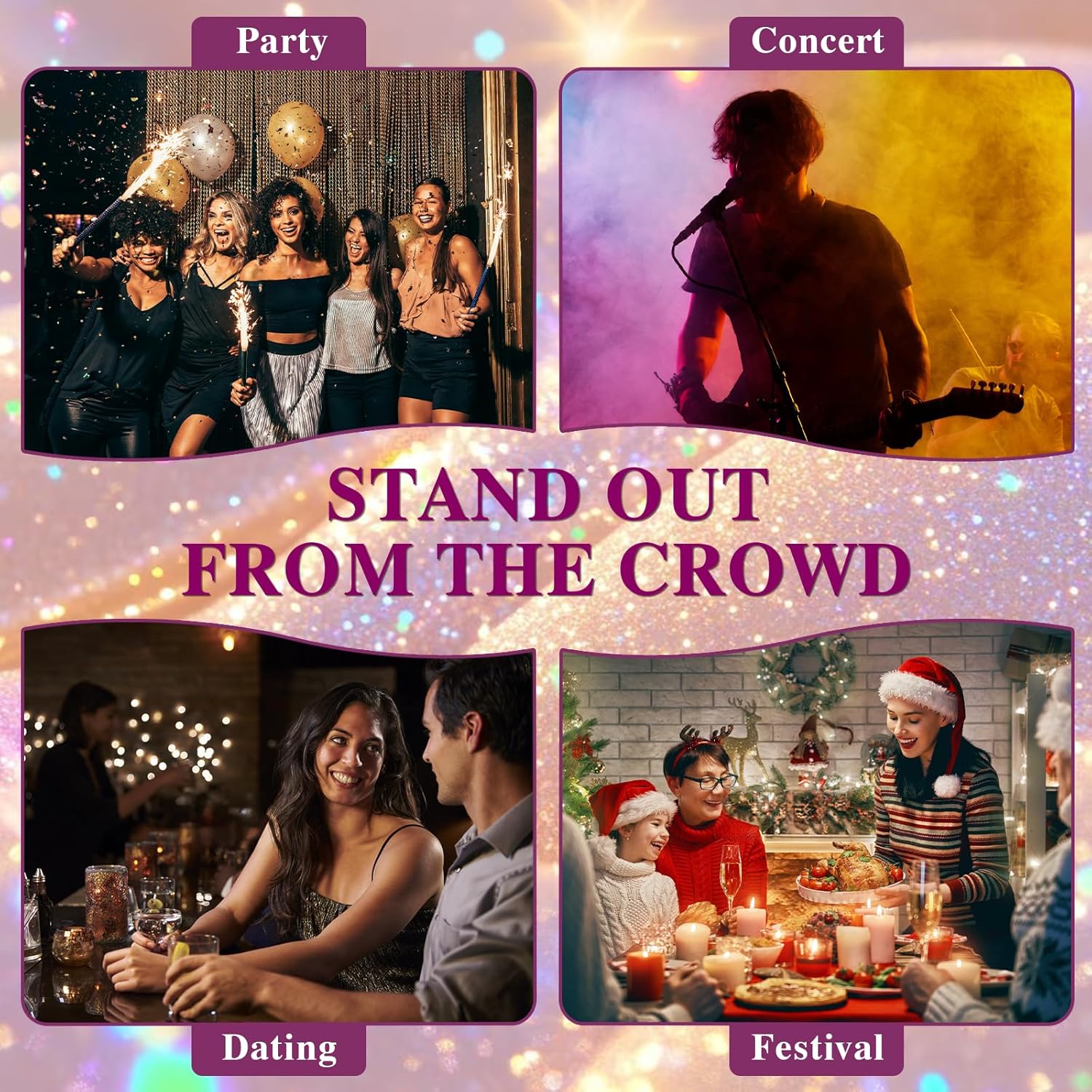 - 【Easy to Use & Clean】Simply shake the bottle, spray from 20-30cm away onto hair, body, or clothes, and let it set for 60 seconds.And stays put through sweat and humidity. Our hair glitter spray can be easily removed with soap and water.